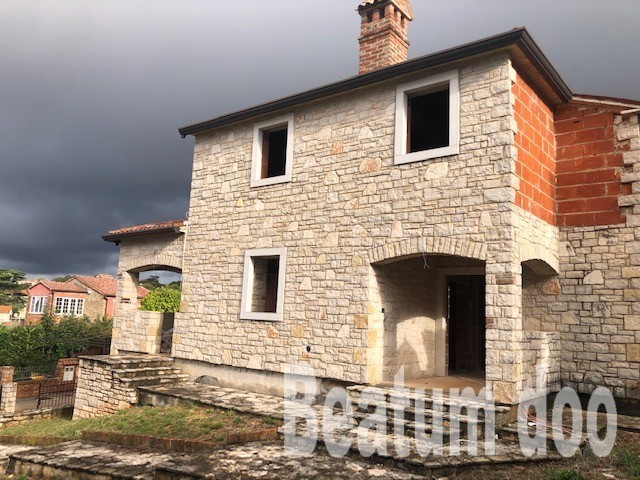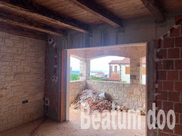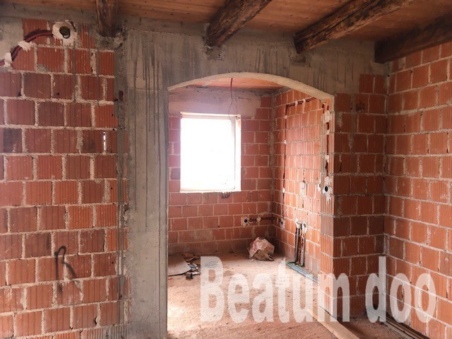 La casa si sviluppa su due livelli, al piano terra c'è una cucina, un soggiorno con camino, un bagno e un balcone, al primo piano ci sono tre camere da letto, un bagno e un balcone.