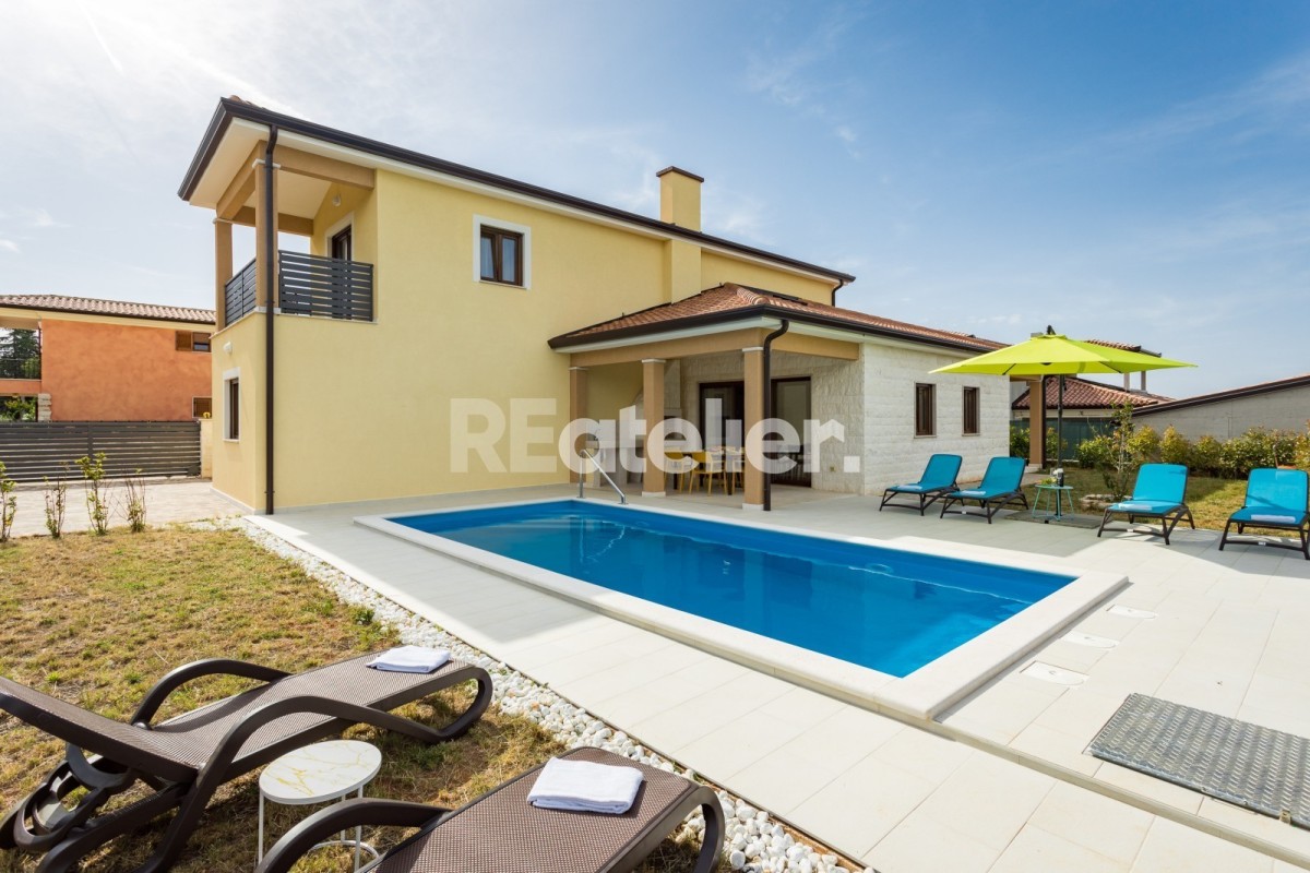 Casa moderna indipendente situata nei dintorni di Buie, in una zona di nuove costruzioni residenziali, in un contesto tranquillo e curato con elevata privacy.