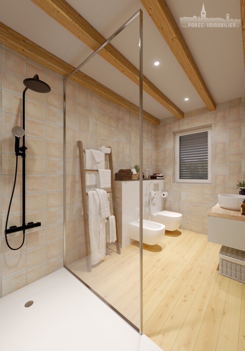 Vendesi la nuova villetta bifamiliare situata a soli 15 km dal centro di Parenzo e dalle sue splendide spiagge. Questa moderna casa si estende sulla superficie di 126,25 m² ed è suddivisa in pianterreno e il primo piano.