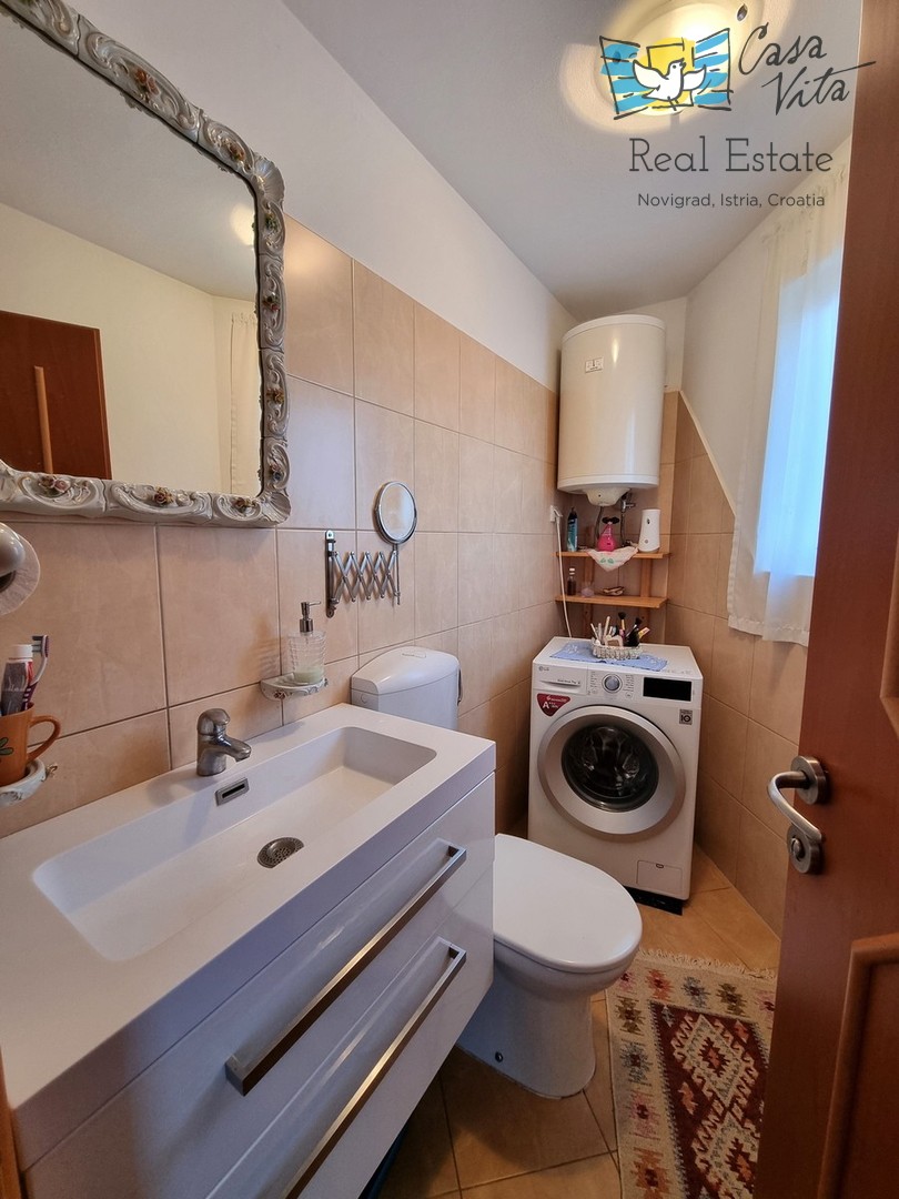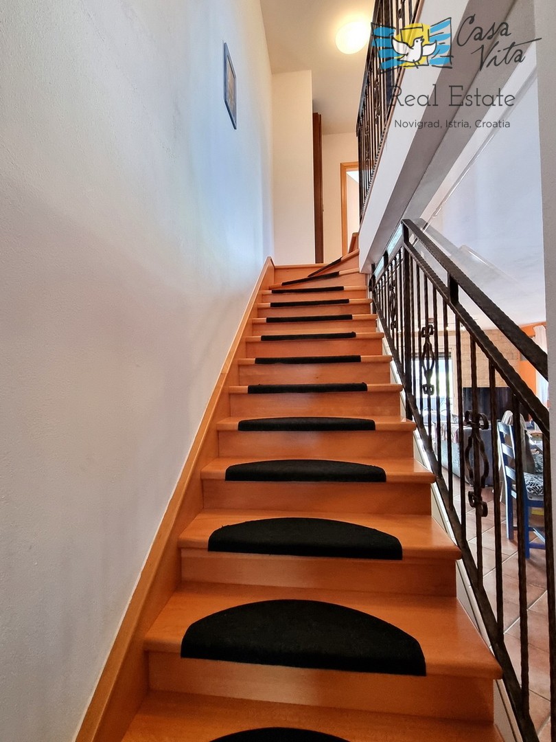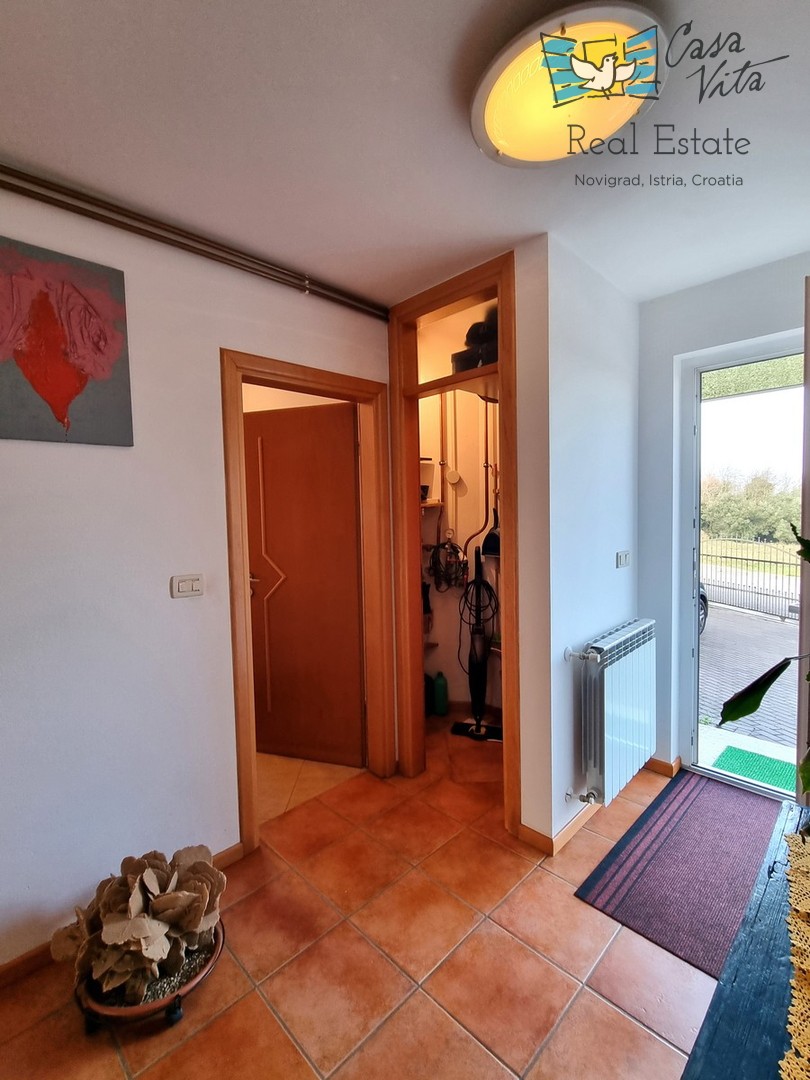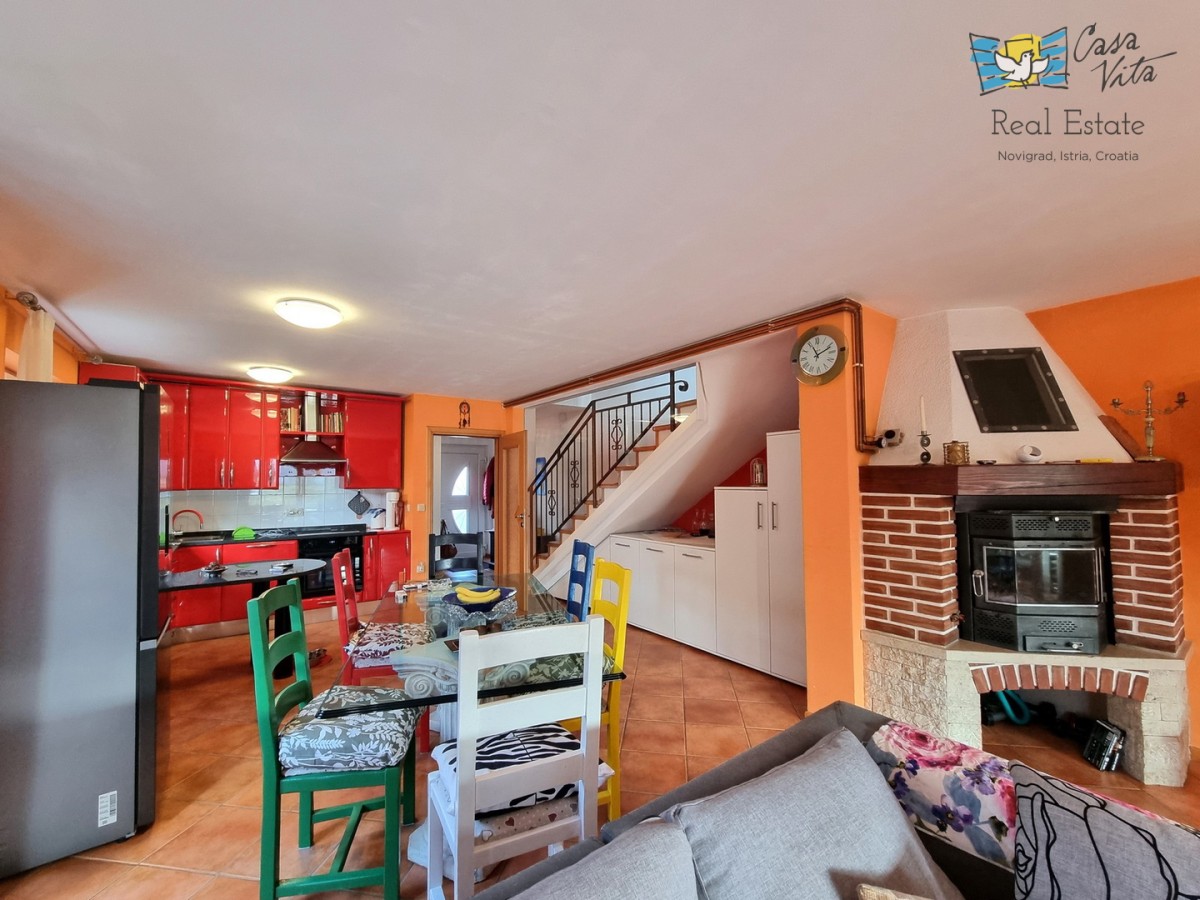 La casa bifamiliare si trova in una piccola cittadina istriana a portata di tutti i servizi del luogo, in una posizione tranquilla. È stata costruita nel 2008 su un terreno di 250 m2. Si compone di piano terra e primo piano. Al piano terra si trovano l’ingresso, un ripostiglio/caldaia, un WC e un ampio spazio giorno con cucina, sala da pranzo e soggiorno con camino, con uscita su un ampio terrazzo esterno chiuso e coperto e sul giardino. Tramite una scala interna si accede al primo piano dove si trovano tre camere da letto e un ampio bagno. Il riscaldamento è regolato tramite riscaldamento centralizzato collegato al camino, ed è presente una prima fase per il riscaldamento centralizzato a gas e aria condizionata (in due punti). Davanti alla casa ci sono posti auto, un piccolo deposito legna, mentre dietro la casa si trova una casetta da giardino con terrazza, un piccolo terreno e un barbecue. In questa proprietà non c’è spazio per l’installazione di una piscina! L’intero terreno è recintato, il che è ottimo per chi ha animali domestici. È una buona scelta anche per famiglie con bambini, vista la vicinanza ai servizi (scuola, asilo), e può essere adatta anche per l’affitto.