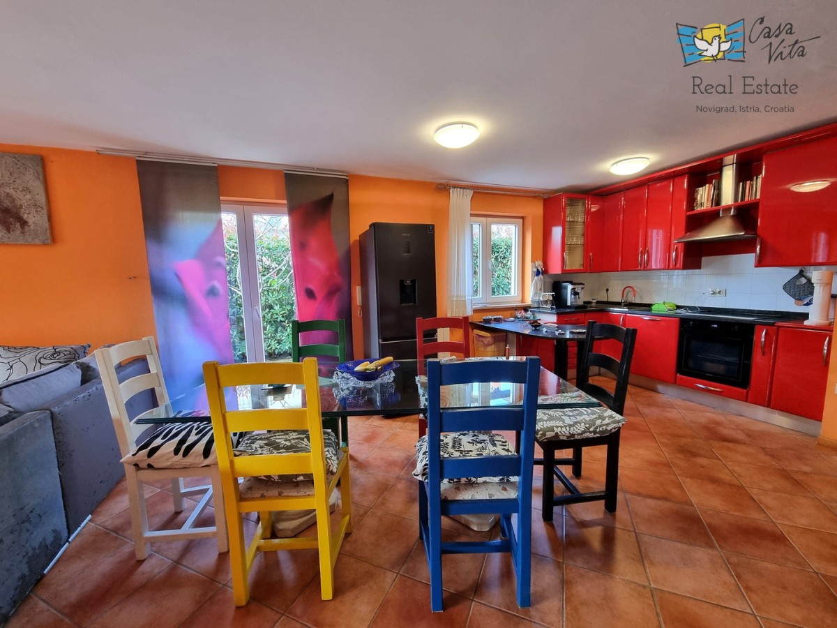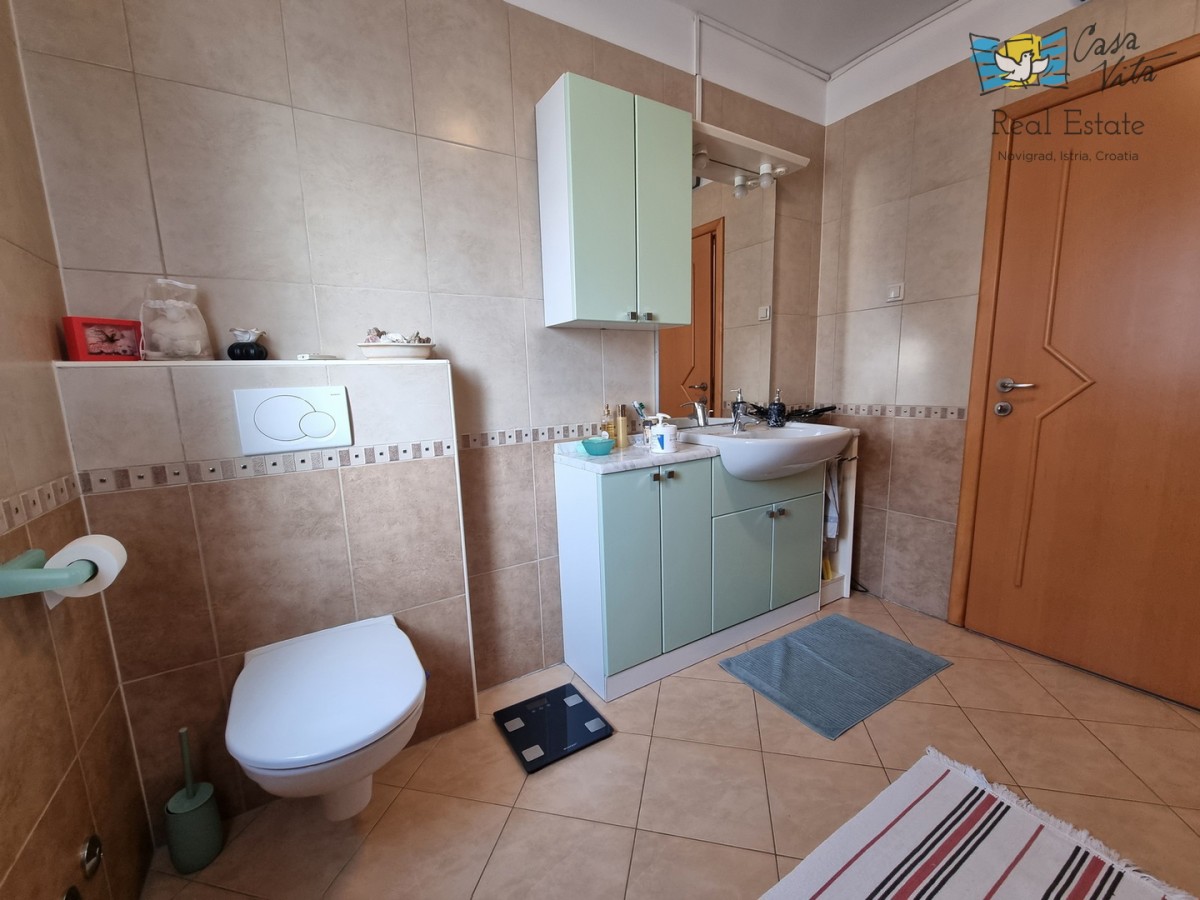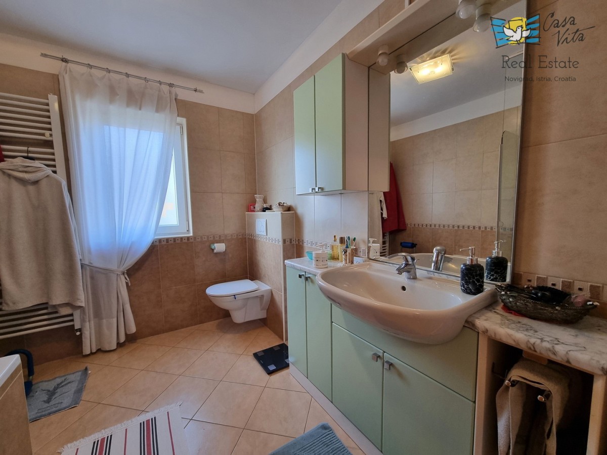 La casa bifamiliare si trova in una piccola cittadina istriana a portata di tutti i servizi del luogo, in una posizione tranquilla. È stata costruita nel 2008 su un terreno di 250 m2. Si compone di piano terra e primo piano. Al piano terra si trovano l’ingresso, un ripostiglio/caldaia, un WC e un ampio spazio giorno con cucina, sala da pranzo e soggiorno con camino, con uscita su un ampio terrazzo esterno chiuso e coperto e sul giardino. Tramite una scala interna si accede al primo piano dove si trovano tre camere da letto e un ampio bagno. Il riscaldamento è regolato tramite riscaldamento centralizzato collegato al camino, ed è presente una prima fase per il riscaldamento centralizzato a gas e aria condizionata (in due punti). Davanti alla casa ci sono posti auto, un piccolo deposito legna, mentre dietro la casa si trova una casetta da giardino con terrazza, un piccolo terreno e un barbecue. In questa proprietà non c’è spazio per l’installazione di una piscina! L’intero terreno è recintato, il che è ottimo per chi ha animali domestici. È una buona scelta anche per famiglie con bambini, vista la vicinanza ai servizi (scuola, asilo), e può essere adatta anche per l’affitto.