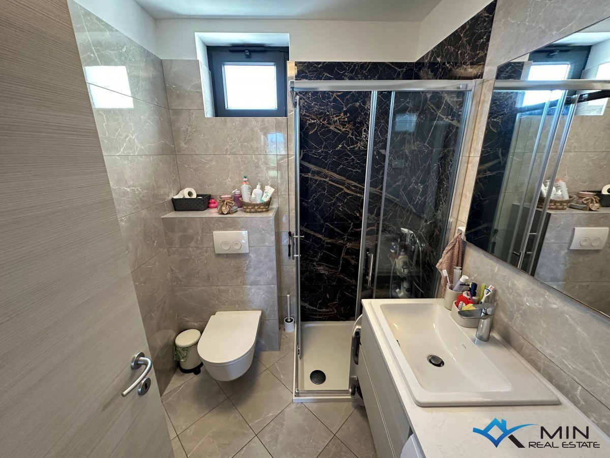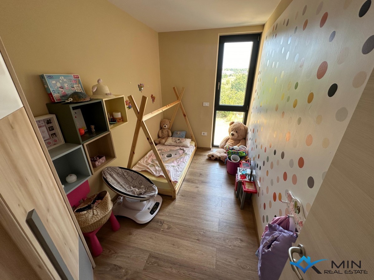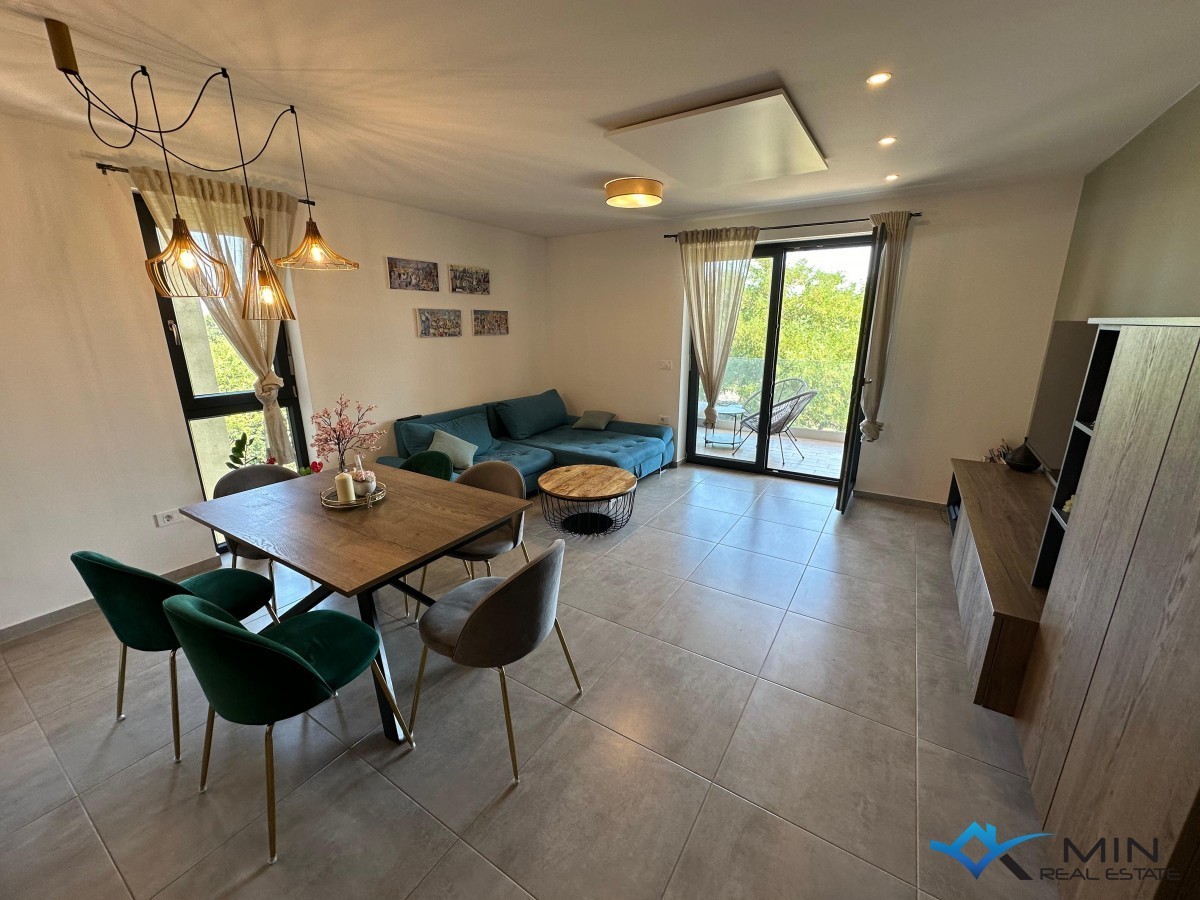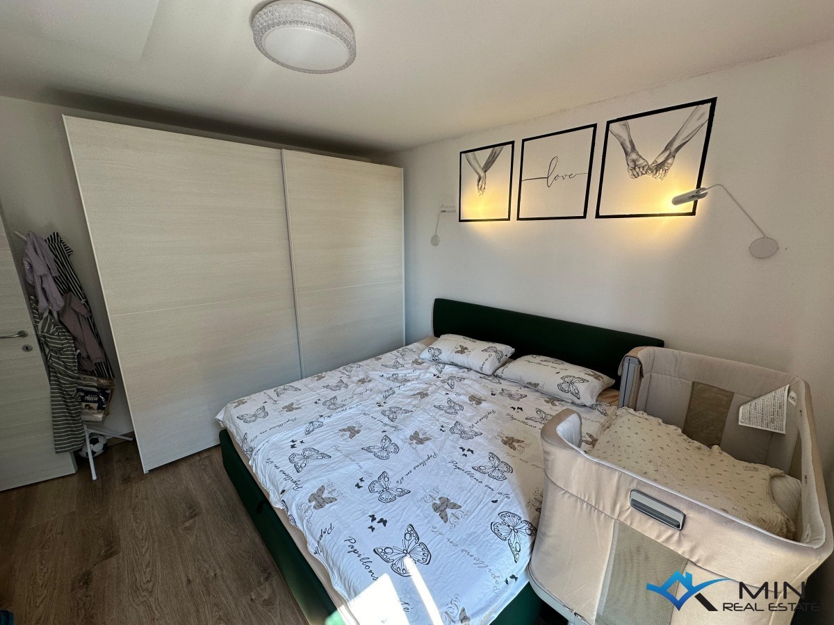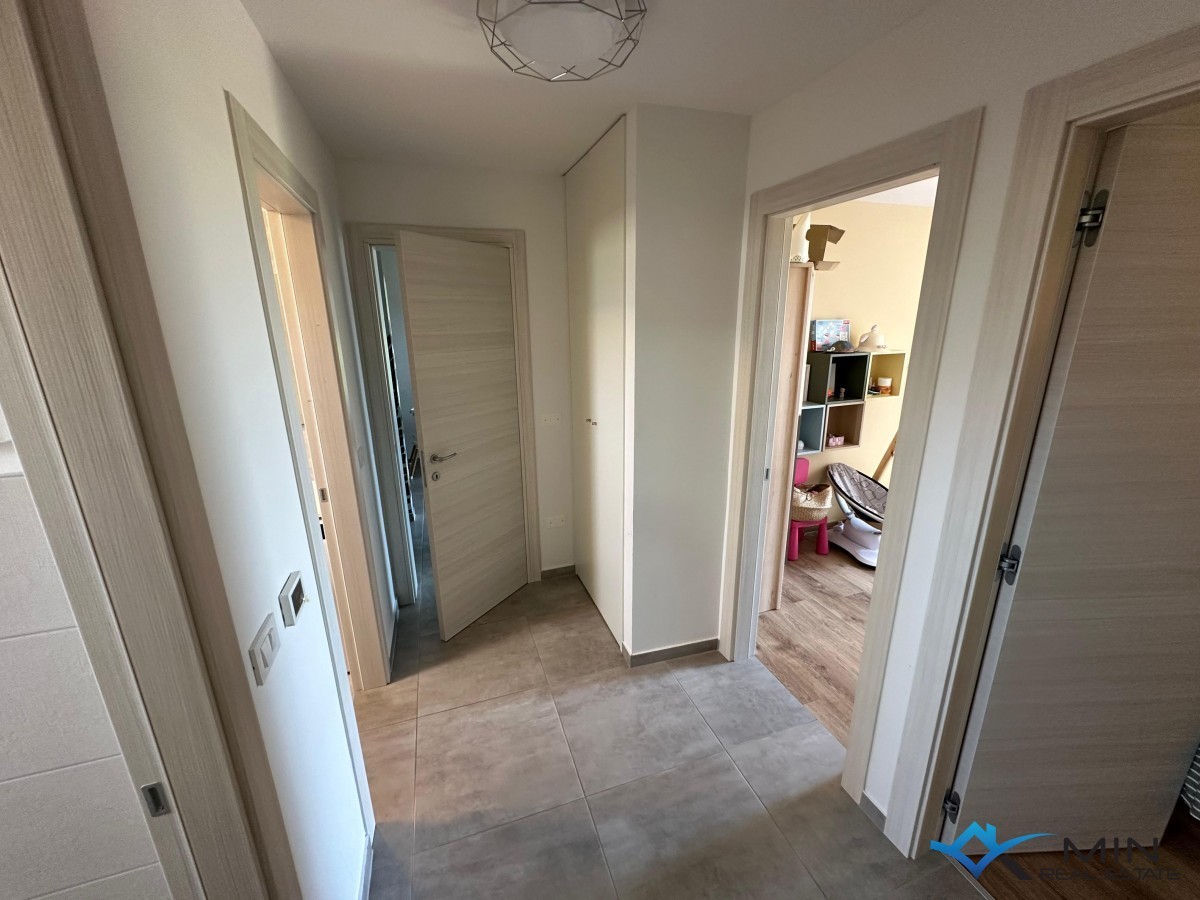 Un appartamento modernamente arredato in vendita vicino a tutti i servizi a Cittanova, a 400 m dal mare, da una spiaggia splendidamente decorata e dal centro città. L'appartamento è di 88 mq ed è composto da ingresso, ripostiglio, corridoio, bagno, wc, cucina, 3 camere da letto, soggiorno con sala da pranzo, terrazzo e legnaia al piano terra dell'edificio. Il riscaldamento nell'appartamento è tramite pannelli a infrarossi e il raffreddamento tramite aria condizionata. L'appartamento dispone di un parcheggio davanti all'edificio, e un ulteriore parcheggio si trova dietro l'edificio dove è possibile caricare un veicolo elettrico alla presa. L'appartamento è stato completamente ristrutturato nel 2020 e sulla linea principale sono stati installati nuovi impianti elettrici e idraulici, vetri, isolamento del pavimento e del soffitto (polistirolo e lana di roccia), finestre in PVC e un addolcitore d'acqua. L'appartamento viene venduto completamente arredato e corredato.