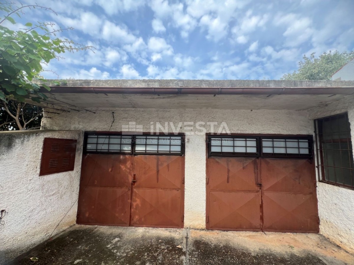 La casa possiede due garage. In uno dei garage è presente anche un bagno, quindi questo garage può essere trasformato in una cucina estiva o in un appartamento. È importante notare che davanti al garage c'è la possibilità di parcheggiare due auto, e in tutto il cortile possono parcheggiare altre tre auto. Accanto al garage ci sono tre stanze aggiuntive: una funge da ripostiglio per biciclette, un'altra come legnaia e la terza come caldaia con una stufa in cui si trova un serbatoio metallico per il gasolio.