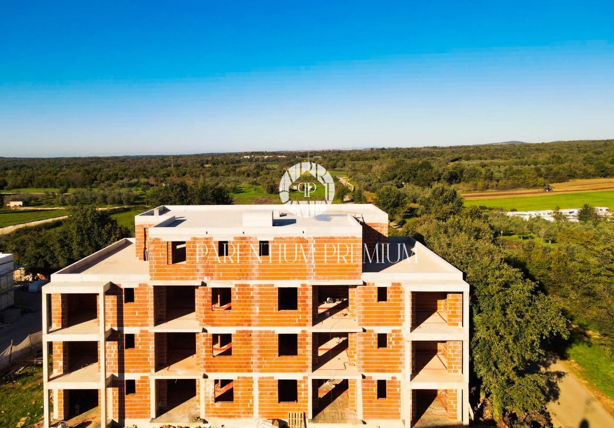 Nei dintorni della città di Parenzo, in un insediamento che offre tutti i comfort di una vita confortevole, si trova questo moderno edificio con ascensore e questo attico di alta qualità che si estende su tutto il piano con una superficie totale di 191 m2. .