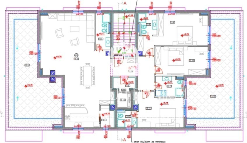 Dall'altro lato, collegata da un elegante corridoio, si trova la zona notte con 3 camere da letto, 3 bagni, il tutto collegato ad un terrazzo comune ideale da vivere tutto l'anno.