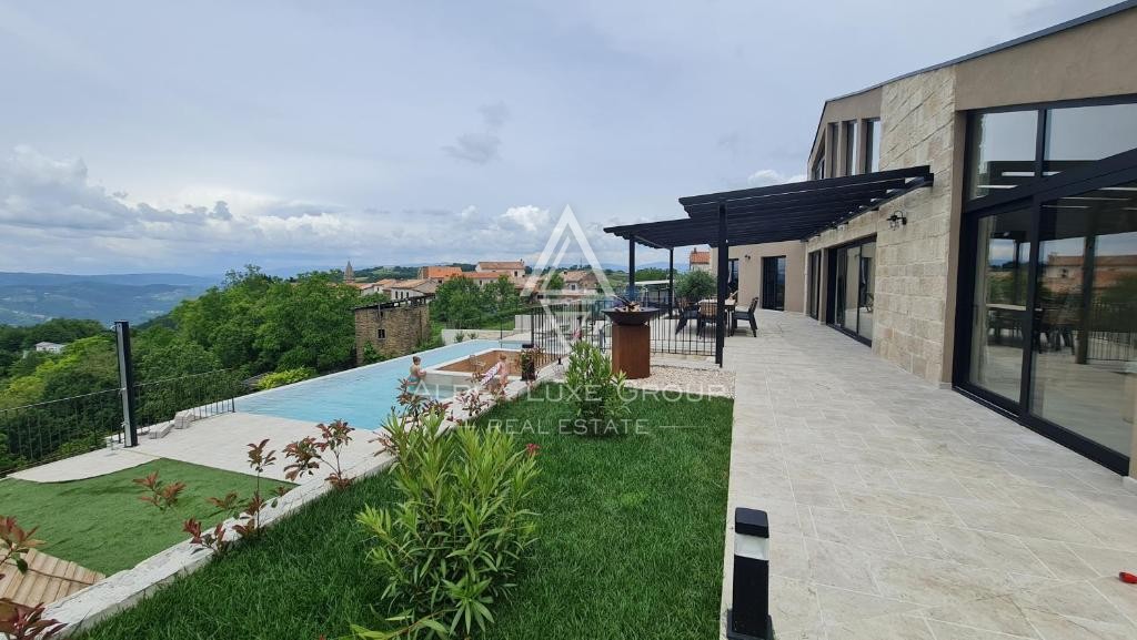 Situata in una posizione tranquilla appena fuori da Motovun, questa elegante villa offre una combinazione raffinata di privacy, comfort e design contemporaneo. Collocata su un terreno rialzato di 1.420 m², la proprietà regala ampie viste panoramiche sul paesaggio collinare istriano, fino alla Slovenia e all’Italia. Completata nel luglio 2024, la villa dispone di quattro spaziose camere da letto, ciascuna con un elegante bagno privato, garantendo massimo comfort e riservatezza. Un bagno per gli ospiti aggiunge ulteriore praticità.
