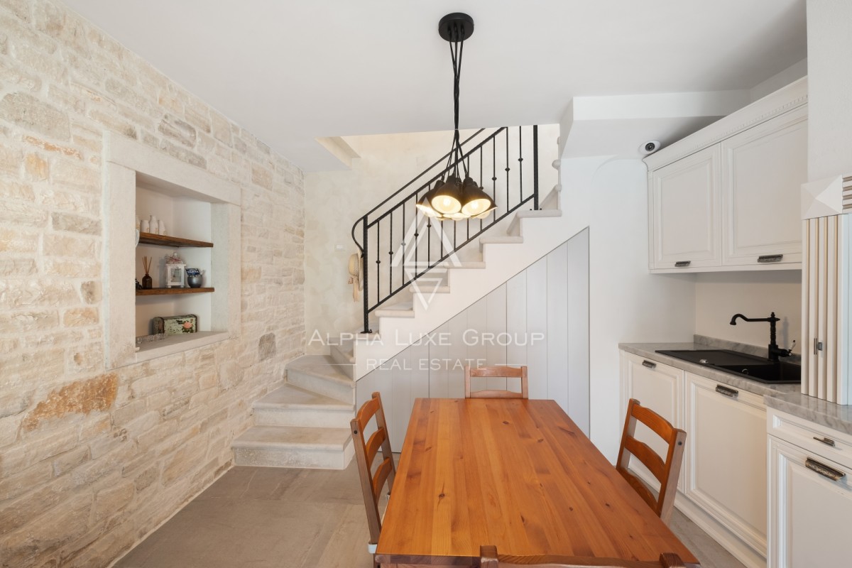 Casa a schiera completamente ristrutturata situata nel cuore di Novigrad, a pochi passi dalla costa e dalle spiagge curate. L’immobile offre circa 57 m2 di superficie abitabile con ulteriori 30 m2 di giardino privato, distribuiti con attenzione tra piano terra e primo piano.