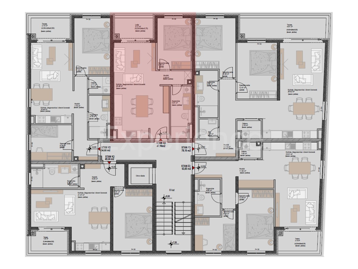 A Parenzo, nelle immediate vicinanze di tutti i servizi e a circa 1.300 m dalla spiaggia, è costruito un moderno edificio residenziale. Nelle immediate vicinanze si trovano negozi, asilo, scuola, ospedale, ristoranti e bar. La posizione dell'edificio è un'ottima scelta per la vita durante tutto l'anno, così come per chi vuole relax e pace nei mesi estivi. L'edificio è caratterizzato da una costruzione di alta qualità, un design moderno e spazi confortevoli che offrono un alto tenore di vita in una posizione unica vicino a tutti i servizi. In vendita è un appartamento con la superficie di 47,96 m². L'appartamento è situtao al terzo piano dell'edificio residenziale. Comprende: uno spazio aperto e luminoso che unisce il soggiorno, sala da pranzo e cucina con accesso al balcone, camera da letto e bagno. Caratteristiche tecniche: - isolamento termico in lana di roccia da 12 cm, - ascensore, - riscaldamento a pavimento e acqua sanitaria tramite pompa di calore Daikin Altherma, - condizionatori Daikin in tutti le stanze, - serramenti in PVC con vetro isolante triplo (a tre strati), - zanzariere, - persiane in alluminio con comando elettrico, - eleganti porte interne con cerniere nascoste, - parquet nelle camere da letto, - porta d'ingresso antieffrazione. Il prezzo indicato non include un posto auto.Il prezzo del parcheggio dipende dalla tipologia: - posto auto in garage sotterraneo 15.000 €, - parcheggio coperto con presa di ricarica per veicoli elettrici 10.000 €, - parcheggio scoperto 5.000 €. Il completamento della costruzione è previsto entro il 1. luglio 2026. Notando, non si paga la tassa di trasferimento immobiliare per un importo di 3% dal prezzo di acquisto.