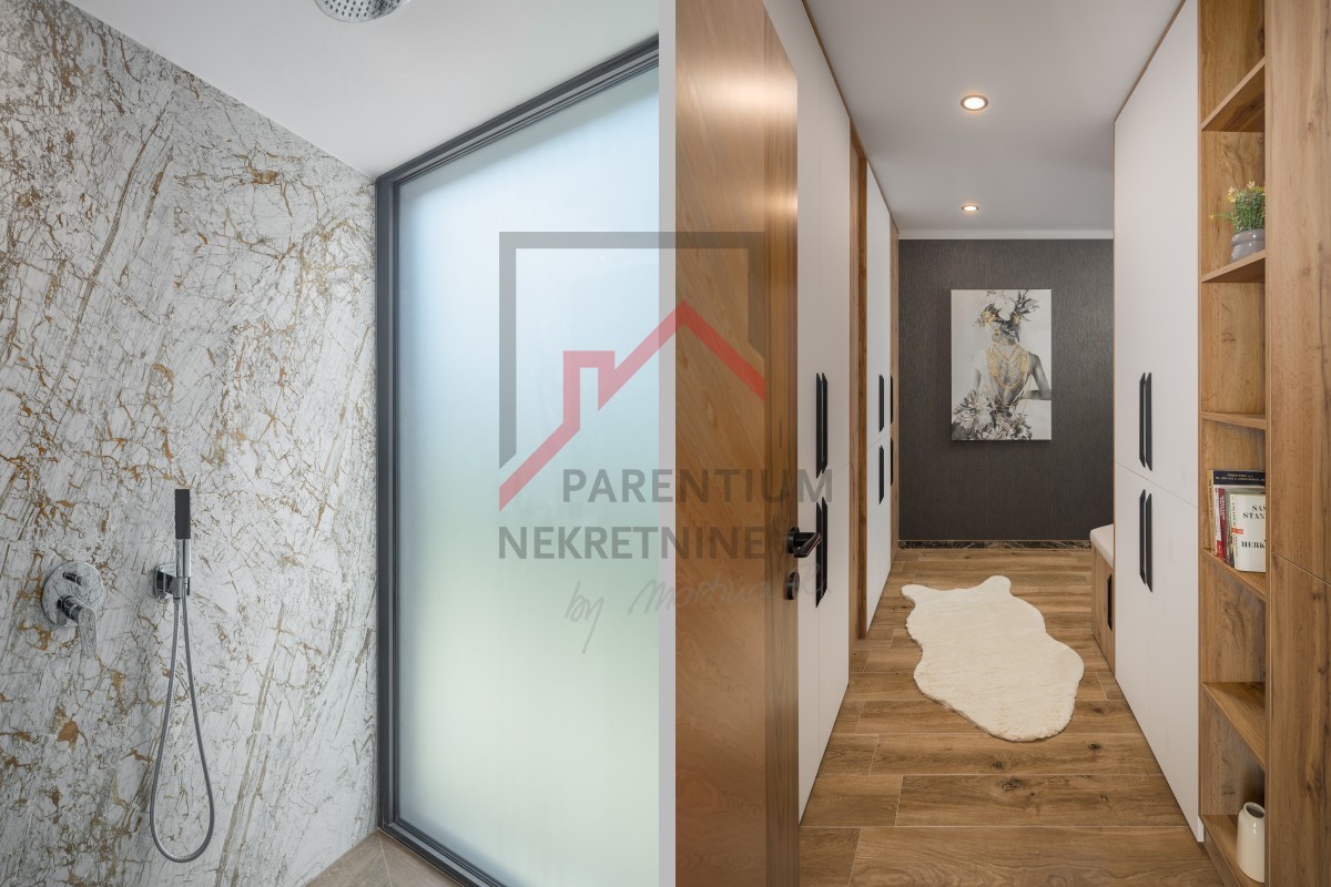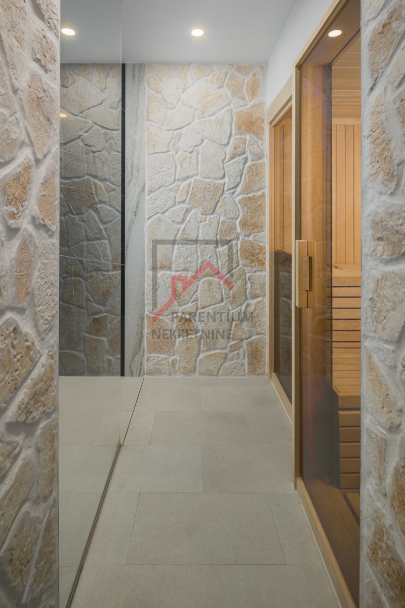 La villa è dotata di sistemi moderni come riscaldamento intelligente, riscaldamento a pavimento, aria condizionata in tutte le stanze, pannelli solari per l'acqua calda e videosorveglianza. C'è anche una sauna per un lusso aggiunto.