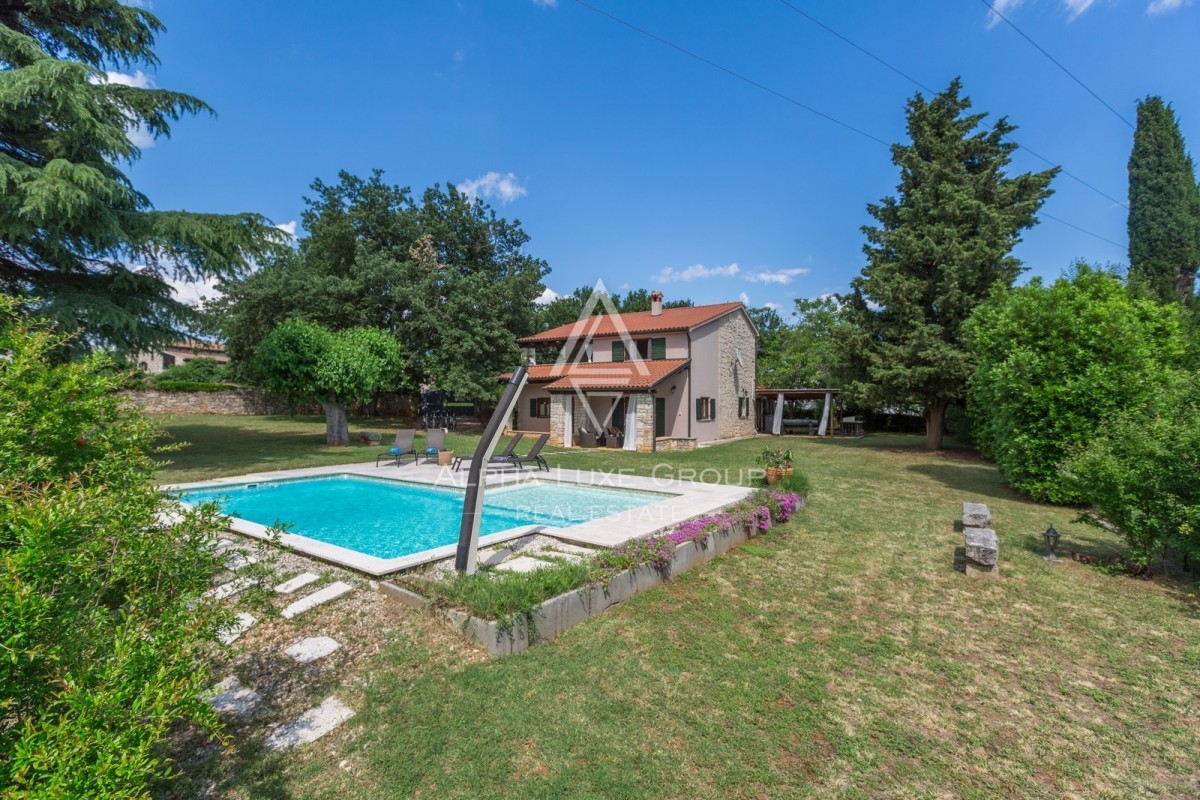 Situata a soli 12 km da Poreč, questa incantevole villa in pietra ristrutturata si trova ai margini di un tranquillo villaggio istriano, offrendo fascino, privacy e un ambiente naturale. Costruita prima del 1968, la proprietà è stata completamente ristrutturata nel 2009, combinando un design tradizionale con comfort moderni.