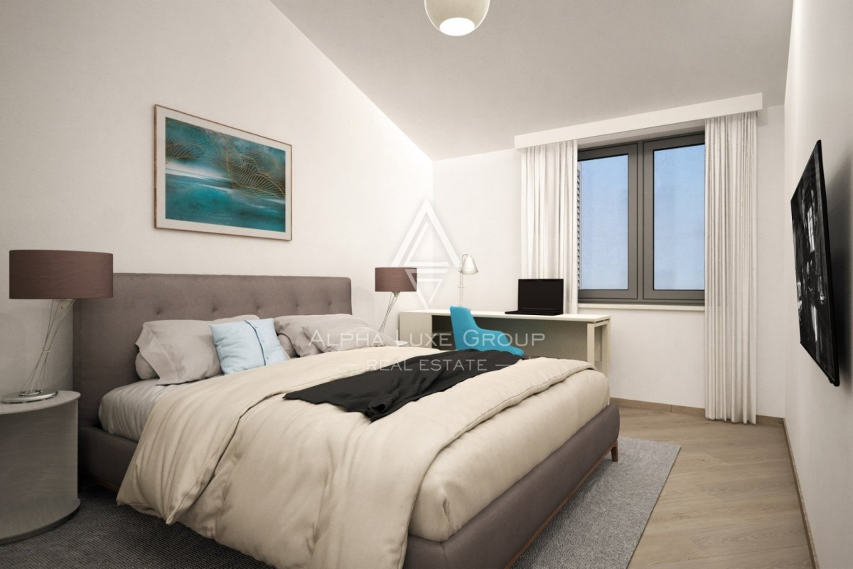 Situato nella periferia di Poreč, questo nuovo appartamento con due camere da letto offre uno stile di vita moderno e una splendida vista sul mare. L'immobile, attualmente in costruzione, si trova al primo piano di un edificio residenziale elegante e si estende su una superficie di 74,49 m², progettata per garantire comfort e funzionalità.