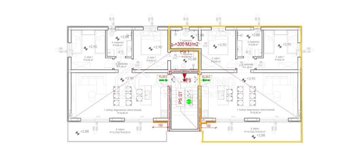 L'edificio è costruito con materiali da costruzione di alta qualità. Gli infissi esterni saranno in alluminio di alta qualità color antracite con persiane elettriche. I condizionatori d'aria inverter garantiranno comfort e risparmio, mentre l'appartamento sarà riscaldato tramite riscaldamento elettrico a pavimento.