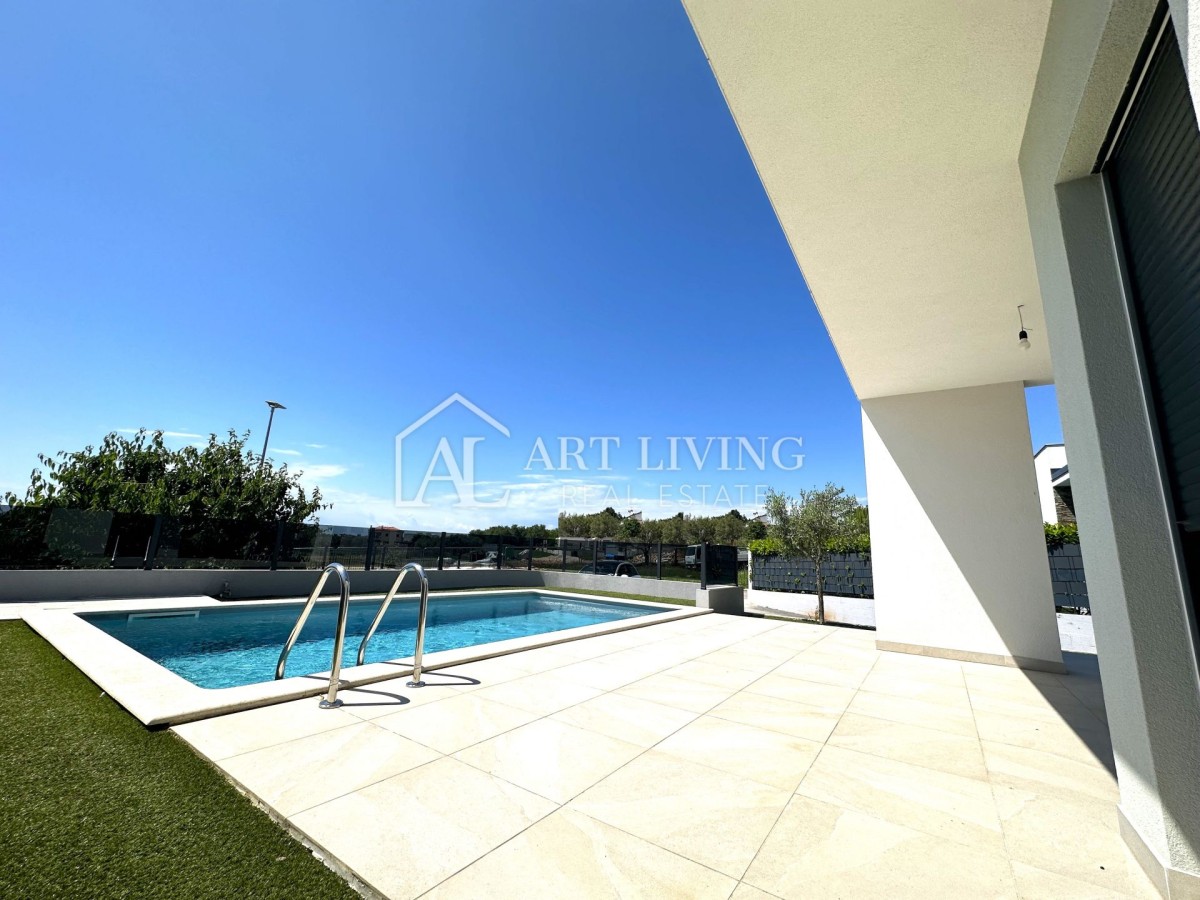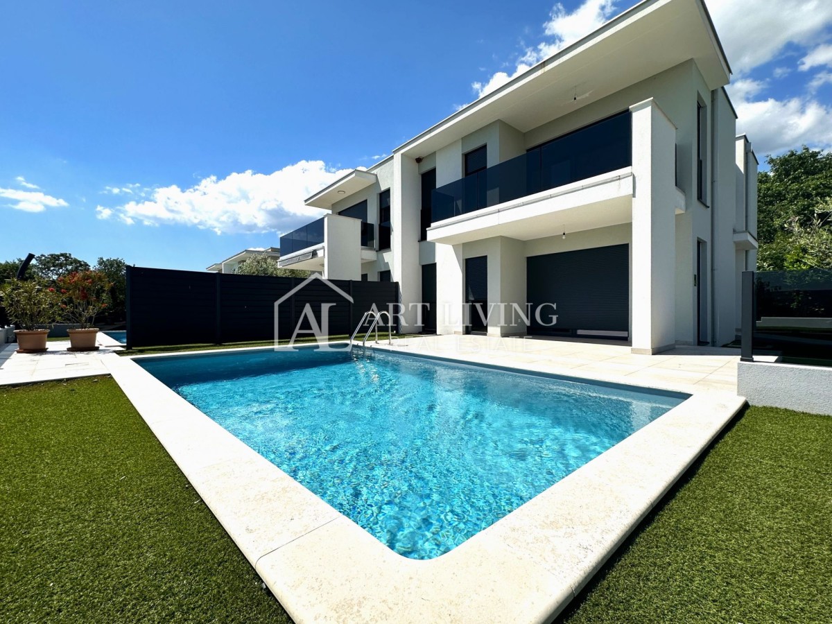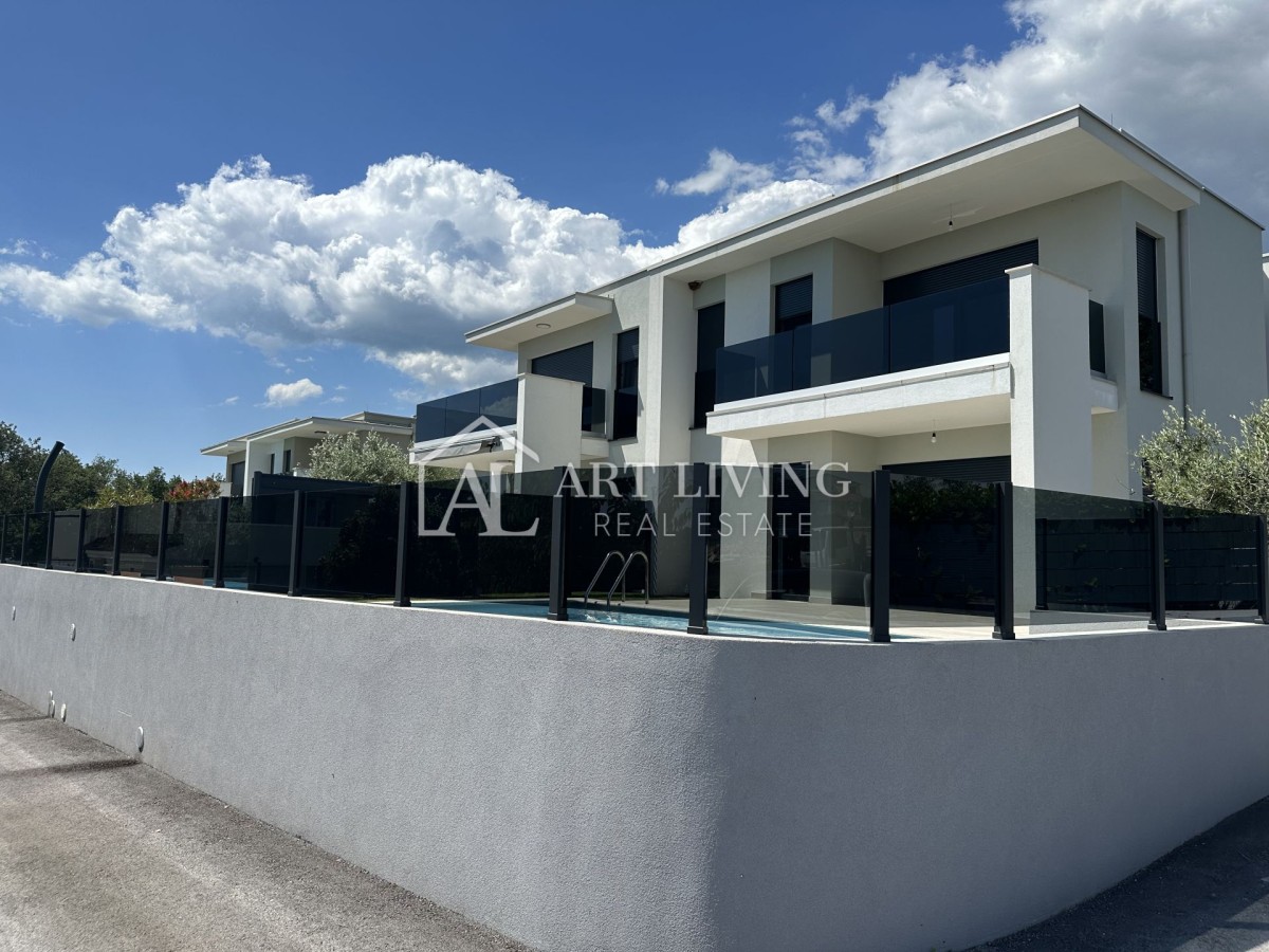 In vendita villa bifamiliare con piscina — nuova costruzione moderna, situata in una zona tranquilla e piacevole, a soli 1,3 km dal mare e 6 km da Umago.