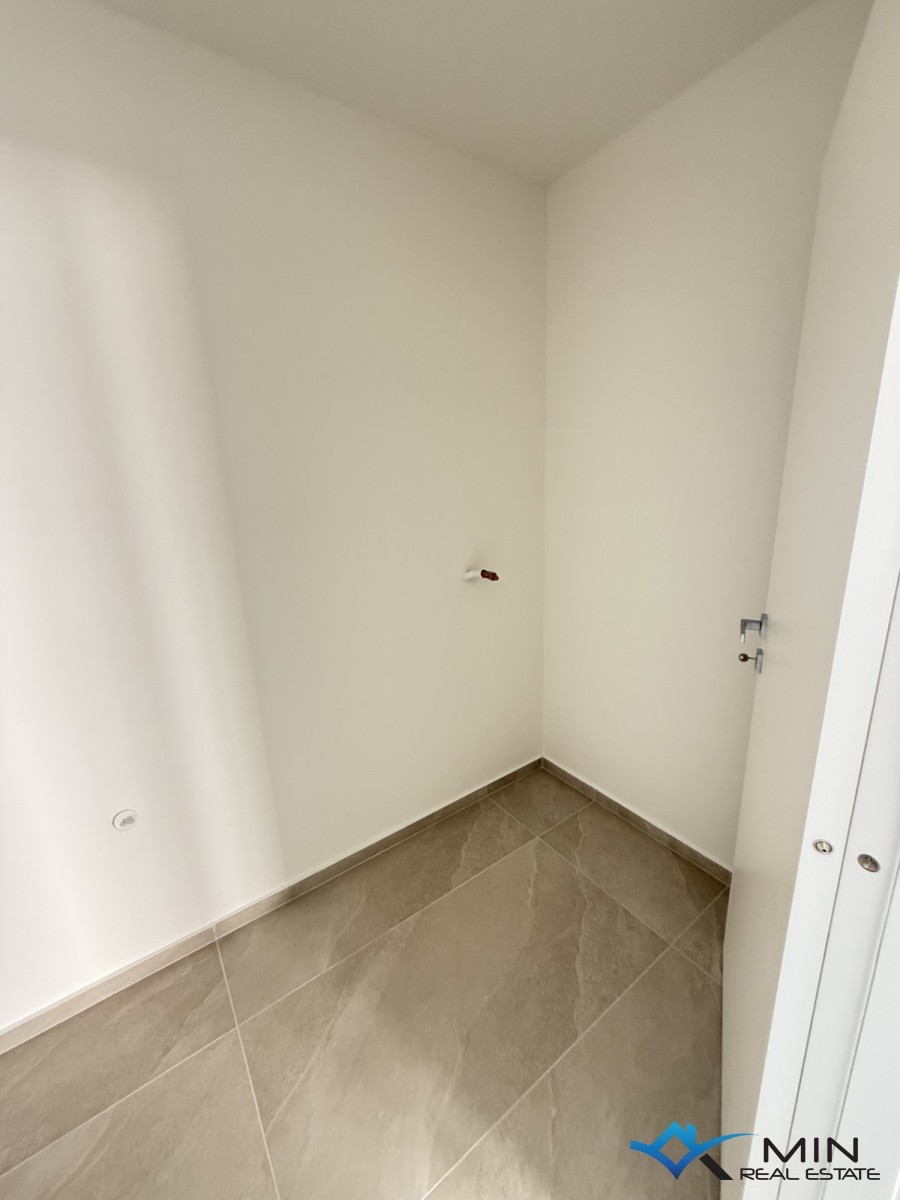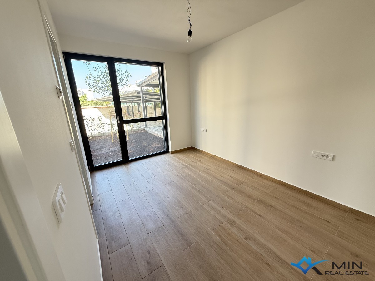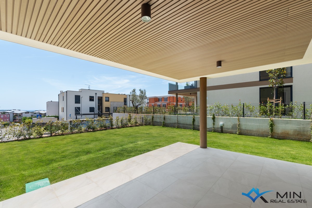 Un appartamento in vendita in una posizione molto ricercata a Cittanova. L'appartamento si trova a 900 m dal mare e da una bellissima spiaggia paesaggistica, e 1200 m dal centro della città. L'appartamento si trova al piano terra di un edificio costruito con materiali di alta qualità e nell'edificio ci sono un totale di 8 appartamenti. L'appartamento al piano terra è di 122 mq, di cui 87 mq di parte residenziale (ingresso, ripostiglio, 2 bagni, 2 camere da letto, cucina con sala da pranzo e soggiorno. L'appartamento ha un giardino di 88,80 mq (netti 8,88 m2), terrazzo coperto di 25,40 m2 (netti 12,70 m2), terrazzo scoperto 17,20 m2 (netti 4,30 m2), ripostiglio 3,40 m2 (netti 2,55 m2) e posto auto di 12,50 m2 (netti 2,50 m2).L'appartamento è dotato di impianto elettrico riscaldamento a pavimento, condizionatori e caminetto.L'appartamento è dotato di ceramiche di prima scelta, i sanitari nei bagni sono di note case produttrici.L'appartamento può essere utilizzato per uso residenziale o turistico