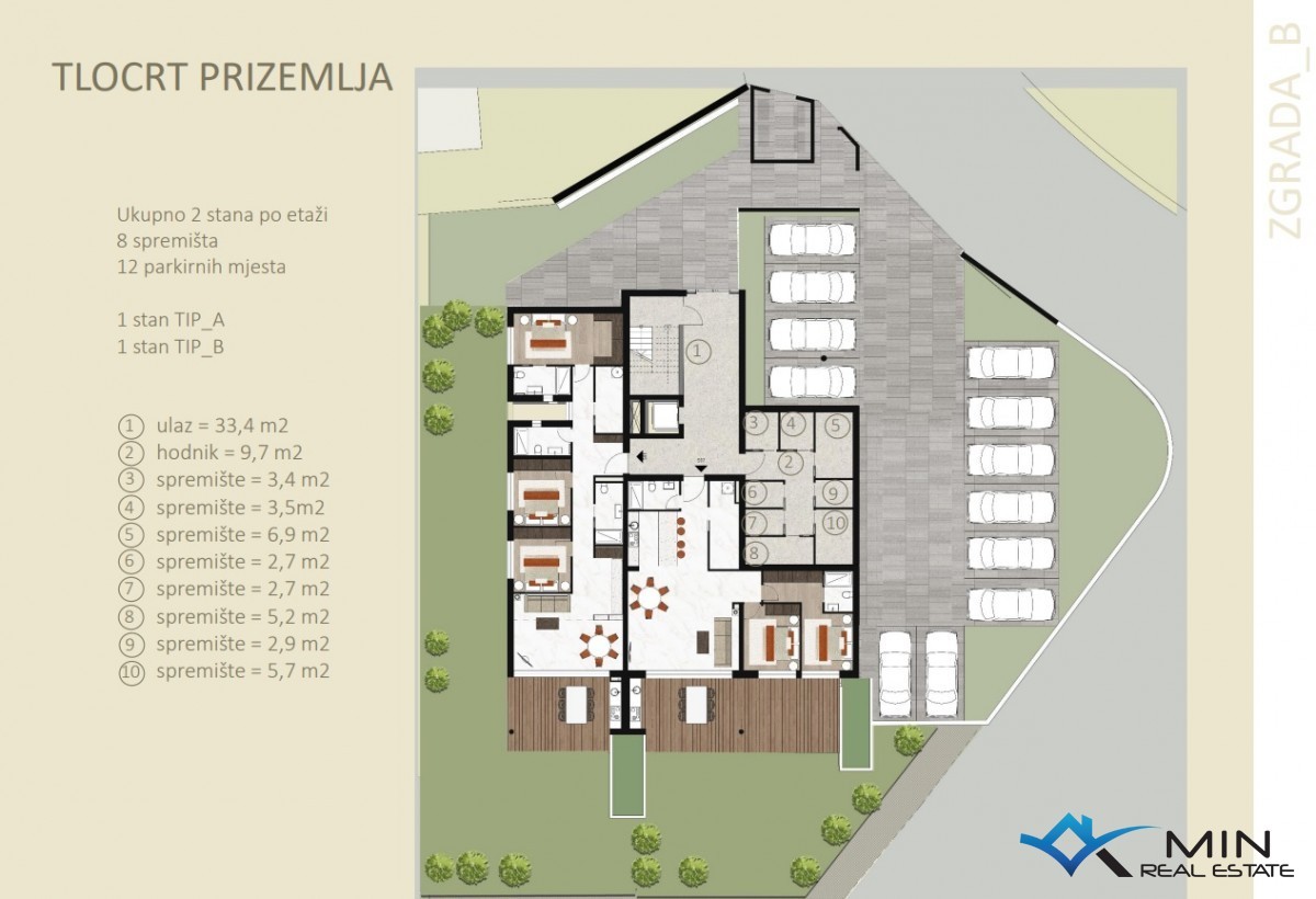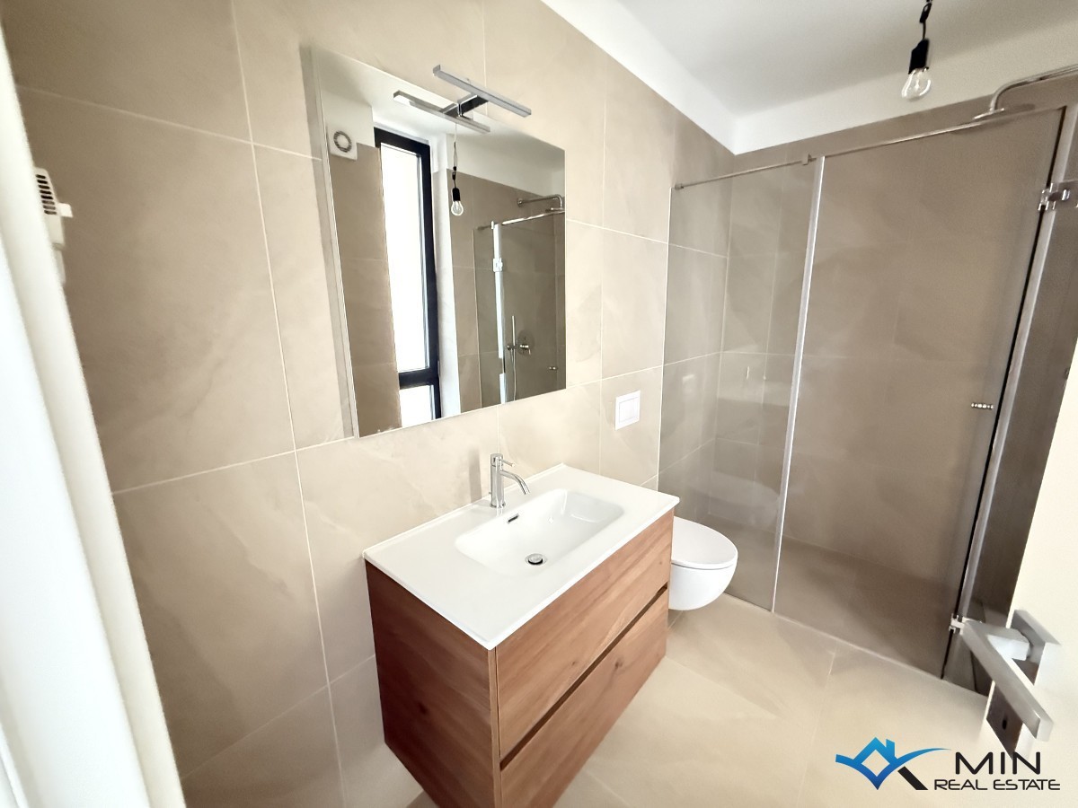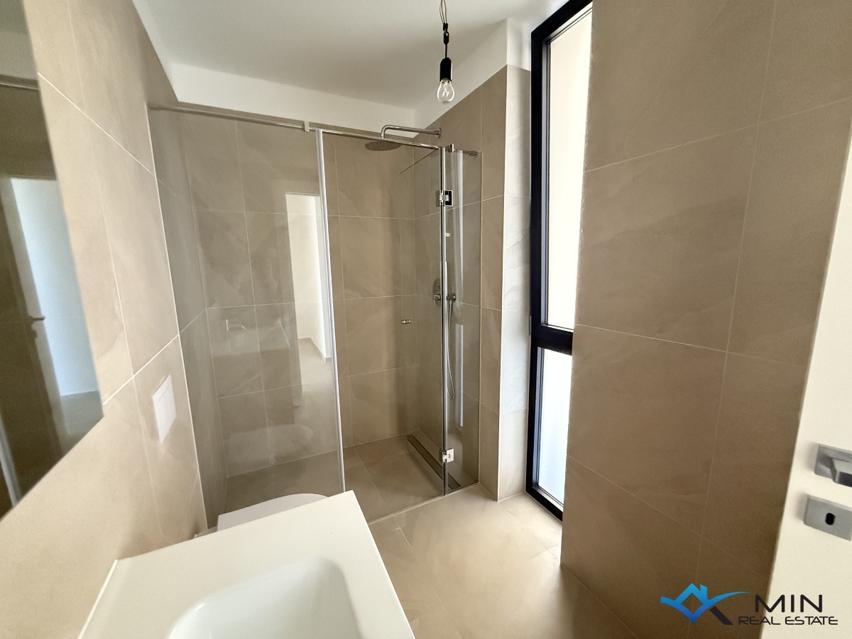 Un appartamento in vendita in una posizione molto ricercata a Cittanova. L'appartamento si trova a 900 m dal mare e da una bellissima spiaggia paesaggistica, e 1200 m dal centro della città. L'appartamento si trova al piano terra di un edificio costruito con materiali di alta qualità e nell'edificio ci sono un totale di 8 appartamenti. L'appartamento al piano terra è di 122 mq, di cui 87 mq di parte residenziale (ingresso, ripostiglio, 2 bagni, 2 camere da letto, cucina con sala da pranzo e soggiorno. L'appartamento ha un giardino di 88,80 mq (netti 8,88 m2), terrazzo coperto di 25,40 m2 (netti 12,70 m2), terrazzo scoperto 17,20 m2 (netti 4,30 m2), ripostiglio 3,40 m2 (netti 2,55 m2) e posto auto di 12,50 m2 (netti 2,50 m2).L'appartamento è dotato di impianto elettrico riscaldamento a pavimento, condizionatori e caminetto.L'appartamento è dotato di ceramiche di prima scelta, i sanitari nei bagni sono di note case produttrici.L'appartamento può essere utilizzato per uso residenziale o turistico