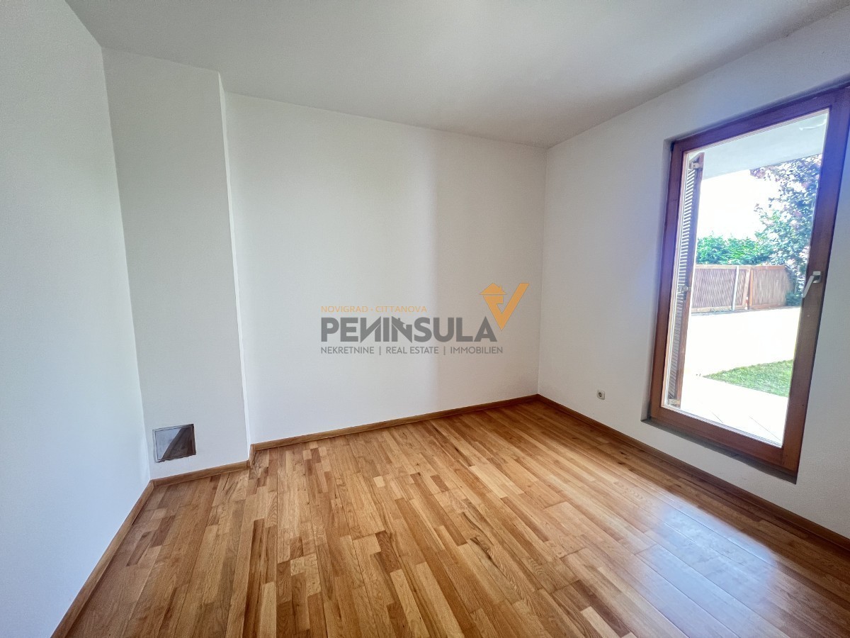 In vendita un appartamento spazioso situato in una posizione tranquilla, a soli 3 chilometri dal centro di Novigrad. L'appartamento si trova al piano terra di un edificio residenziale e ha una superficie totale di 75 m². È composto da un ingresso, un ripostiglio, un bagno, un WC separato, una cucina, una zona pranzo e un soggiorno. Un punto di forza di questo appartamento sono le due camere da letto, ognuna con accesso privato a una loggia e a un giardino di 33 m², che offre maggiore privacy e comfort.
