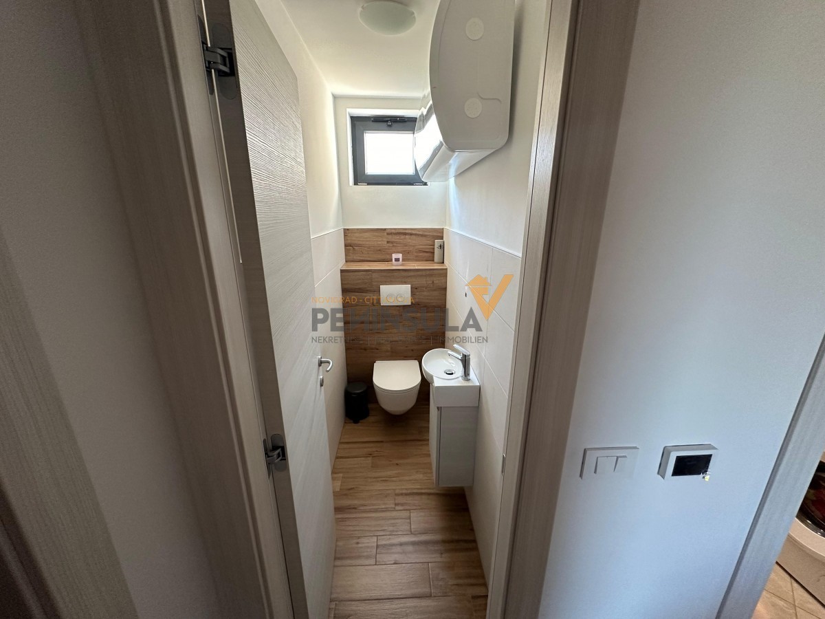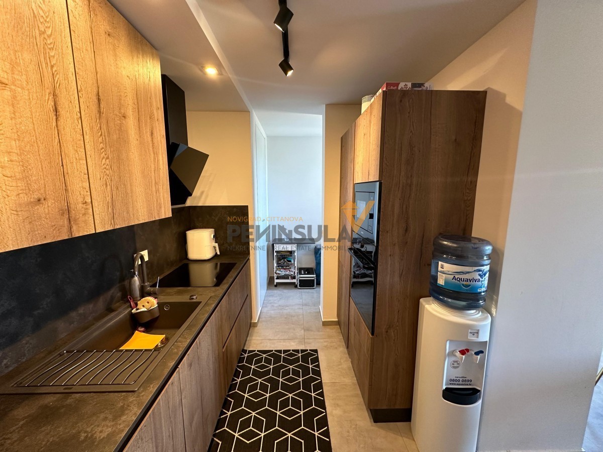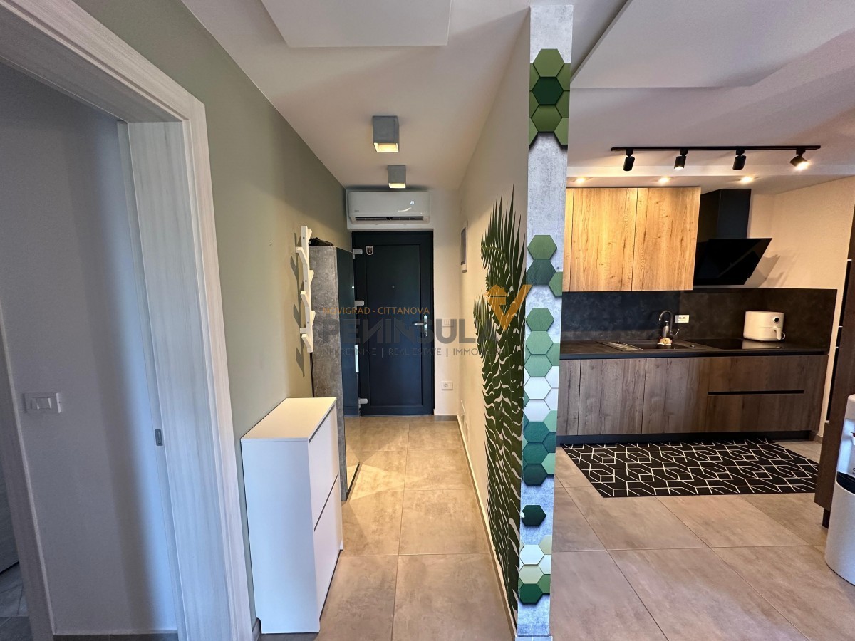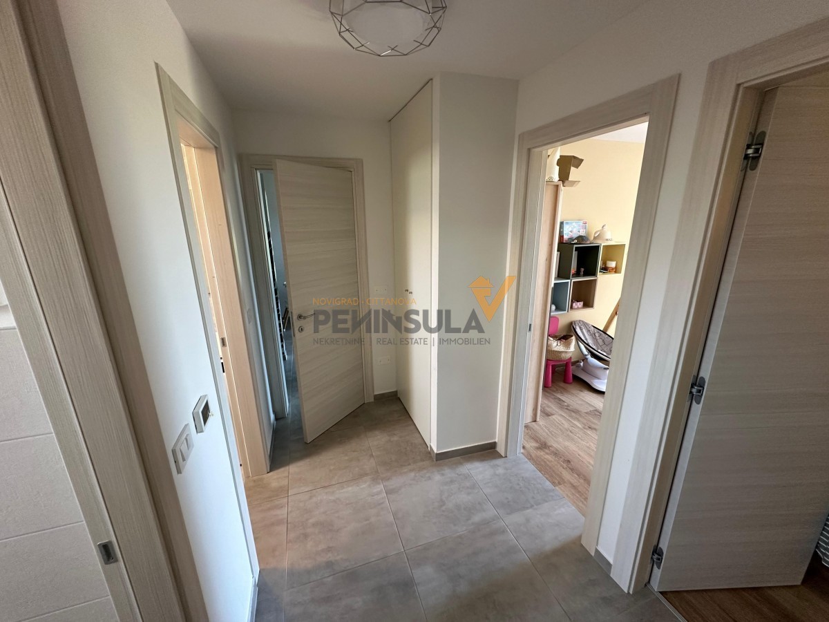 L'appartamento in vendita a Cittanova, con una superficie totale di 87,97 m2, si trova al secondo piano di un edificio residenziale vicino al centro di Cittanova. Si compone di un ingresso, una cucina, una dispensa, un soggiorno con sala da pranzo, un ingresso, tre camere da letto, un bagno, un wc, un terrazzo e un ripostiglio. L'appartamento è stato completamente ristrutturato nel 2020, è stato tolto tutto il tavolato ed è stata fatta la smaltatura, nel pavimento è stato messo del polistirolo spesso 8 cm, è stato abbassato il soffitto ed è stata inserita della lana di roccia spessa 10 cm. Anche la terrazza è rivestita in polistirolo spesso 8 cm. Sulla linea principale sono stati installati nuovi impianti elettrici e idrici, finestre in PVC e un depuratore. L'appartamento viene venduto arredato. Il riscaldamento è tramite pannelli infrarossi, il raffreddamento tramite aria condizionata. Il parcheggio è di fronte all'edificio. Dietro l'edificio si trova un ulteriore parcheggio dove è possibile caricare alla presa un veicolo elettrico.