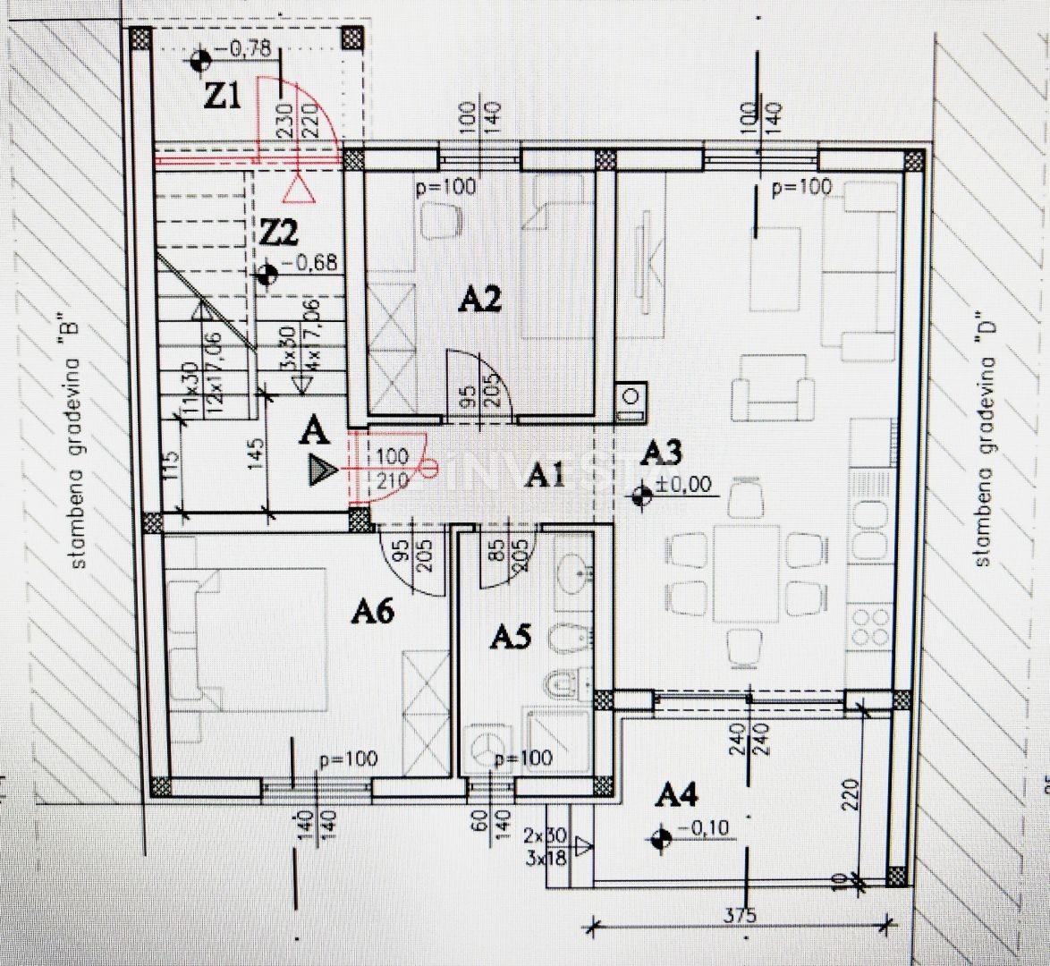 Offerta: Appartamento al piano terra di 54,92 m² a Pola, quartiere Veli Vrh, in un edificio in costruzione, situato a 5 minuti di auto dal centro di Pola.