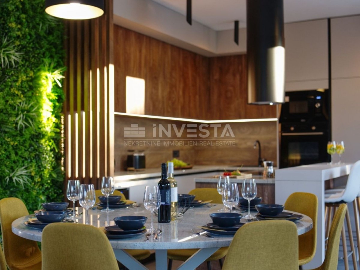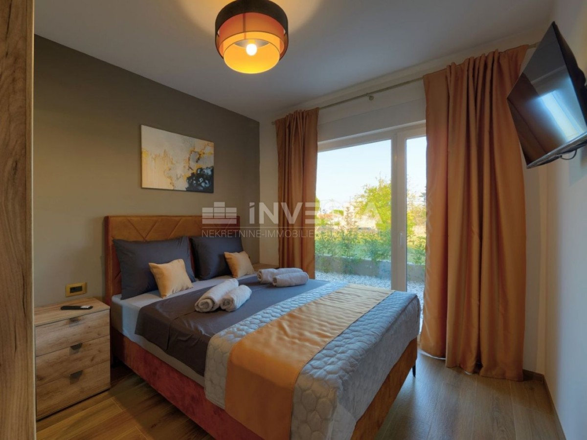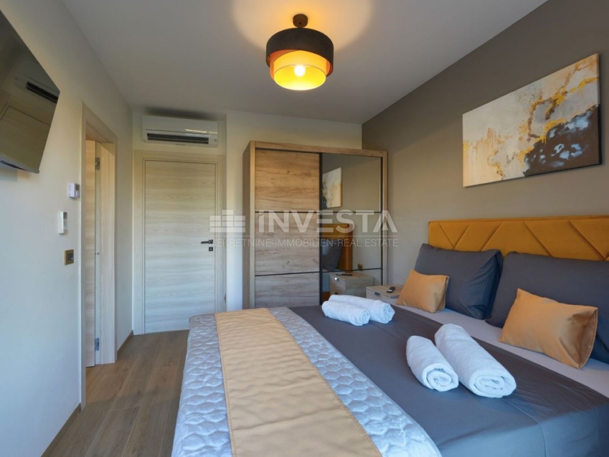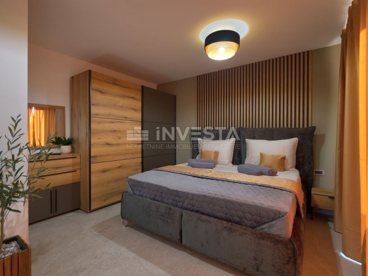 Nel tranquillo paese di Marcana, vicino a Pola e al mare, è in vendita una nuova villa bifamiliare, moderna, costruita nel 2024.