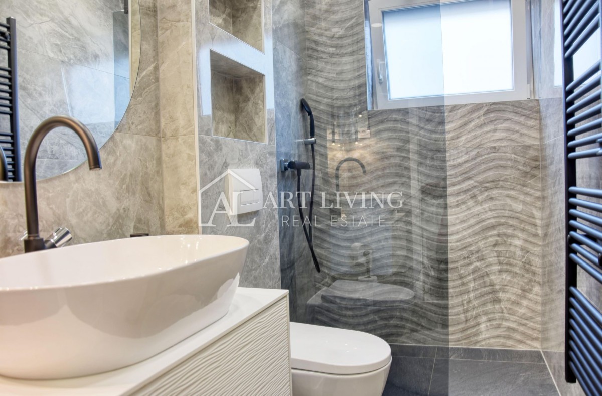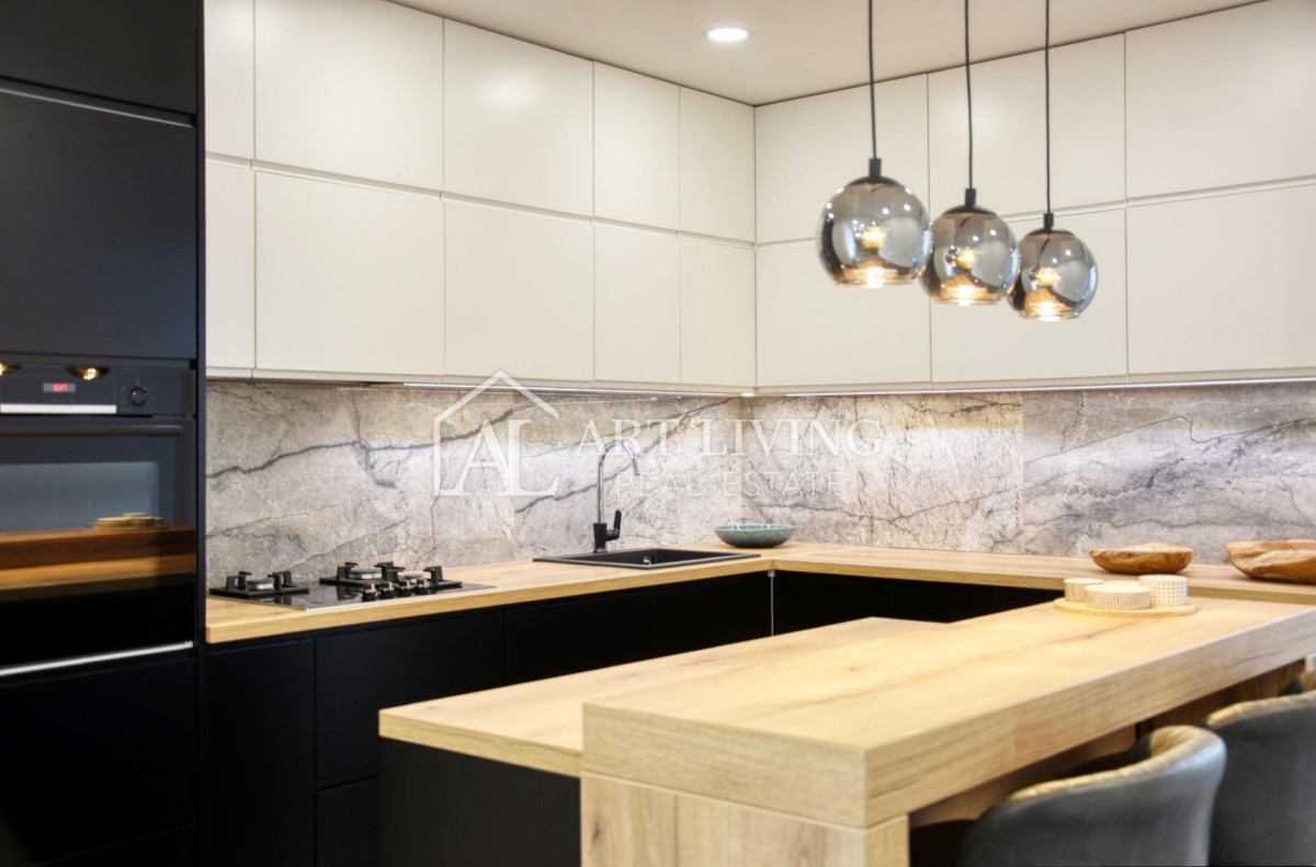In una posizione estremamente attraente a Parenzo, a soli 800 metri dal mare e nelle immediate vicinanze del centro città, si trova questo appartamento spazioso e rifinito con materiali di qualità, con una superficie totale di 100 m². È situato in un quartiere tranquillo, ordinato e piacevole che offre il perfetto equilibrio tra privacy e vicinanza a tutti i servizi essenziali – negozi, scuole, asili, ristoranti, passeggiate e spiagge.