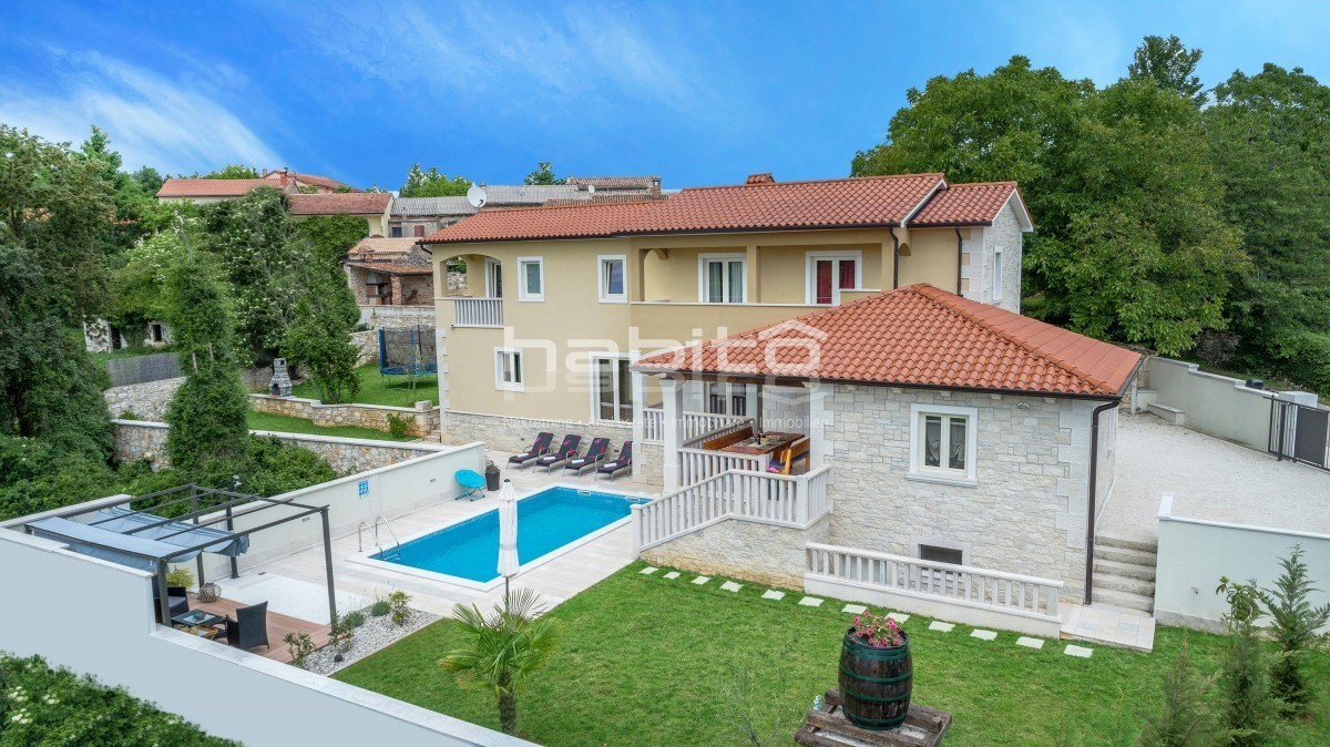 Questa splendida villa si trova nell'Istria centrale. Immersa nella natura, è un'opzione eccellente per tutti coloro che non amano il rumore e il traffico e desiderano stare in pace e tranquillità in un ambiente naturale. La villa ha un proprio giardino recintato di 880 m² dove è possibile godere di una piscina all'aperto di 26 m², un padiglione esterno con salotto, un barbecue e una terrazza coperta per mangiare vicino alla cucina. Un parcheggio privato è disponibile per tre veicoli all'interno della proprietà.