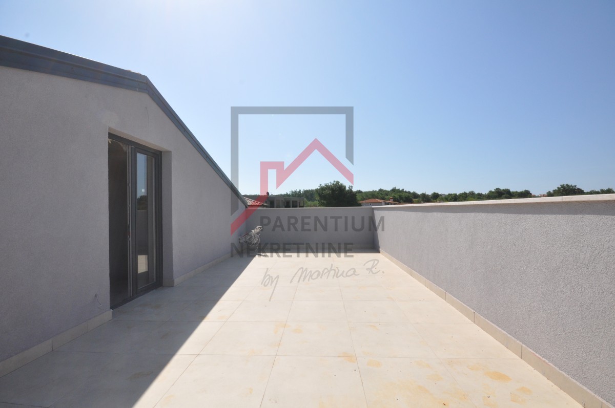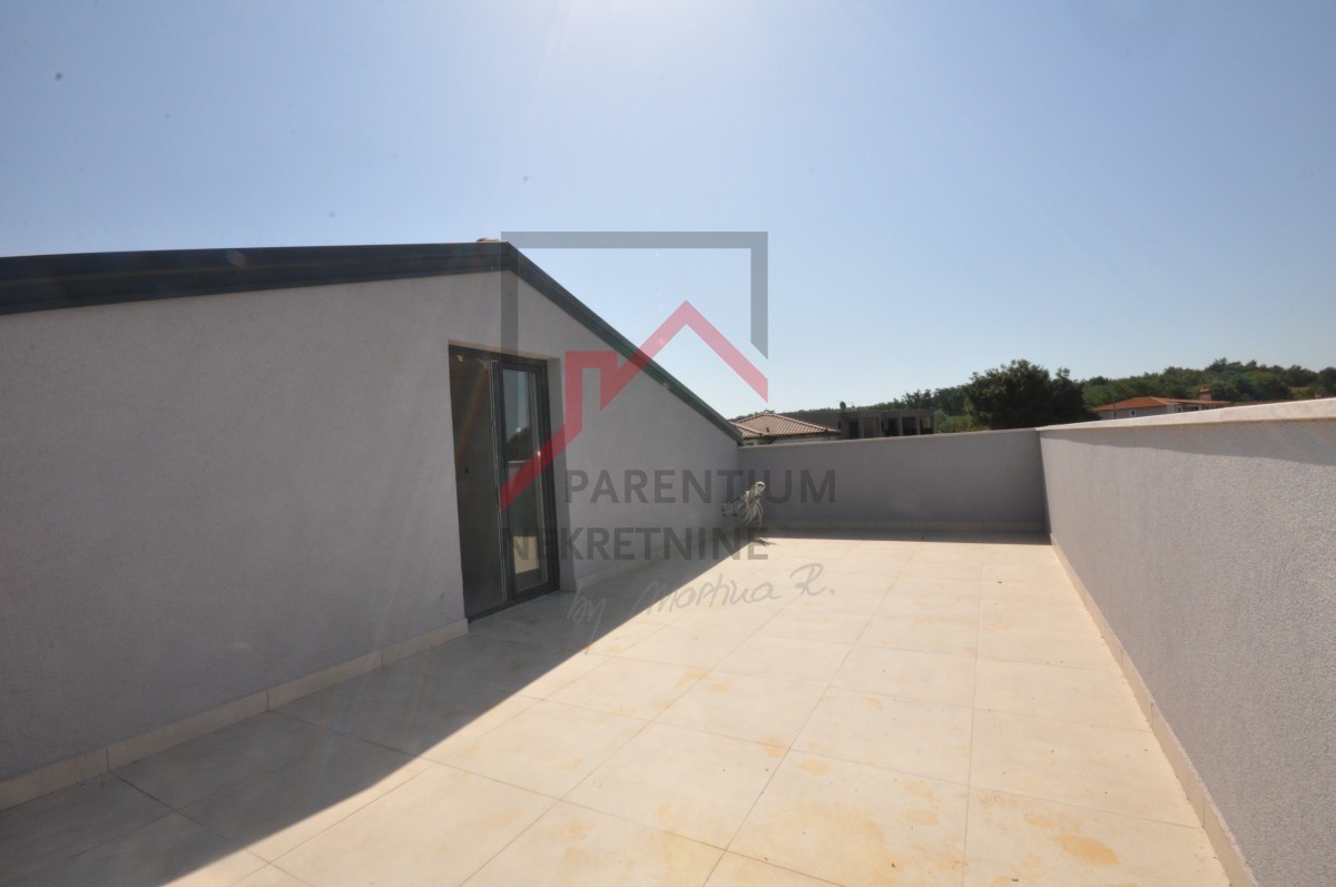 Nei pressi della città di Parenzo, è in vendita questo appartamento con tre camere da letto al primo piano con terrazza in un edificio con 5 appartamenti. L'appartamento è composto da una cucina con zona pranzo e soggiorno, un WC e una camera da letto. Le scale interne conducono al sottotetto alto, dove si trovano altre due camere da letto, un bagno, una galleria e una spaziosa terrazza di 31 m² con vista mare aperta. La terrazza è sicuramente l'argomento principale dell'appartamento, poiché ci sono poche proprietà simili sul mercato.