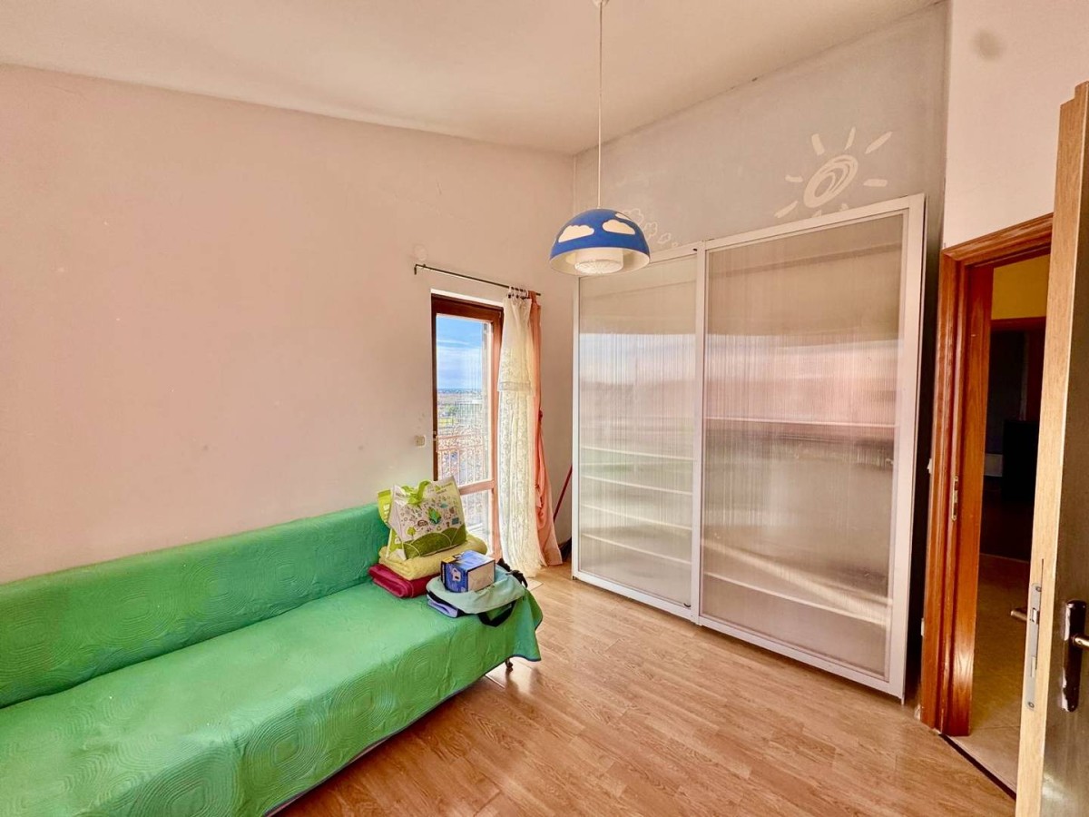 L’appartamento è composto da ingresso, cucina, sala da pranzo con soggiorno, due camere da letto, bagno, due terrazze e un posto auto.
