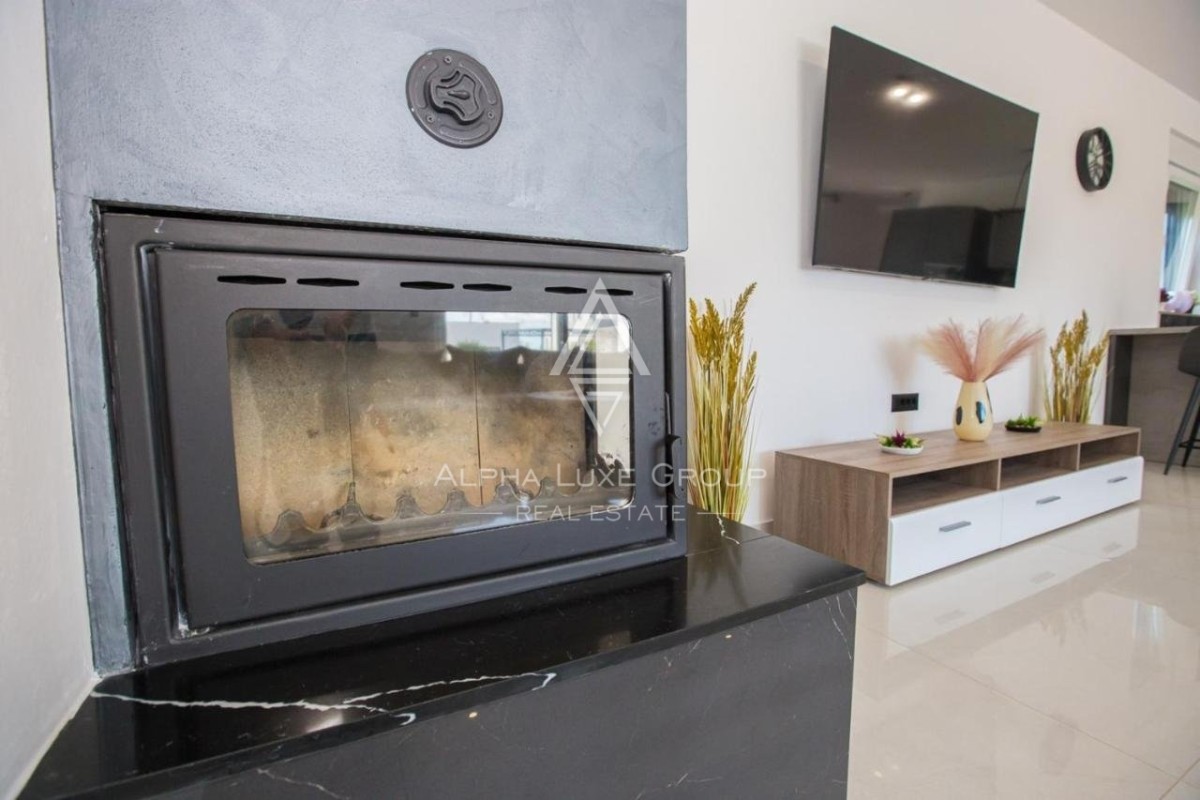All'esterno, la proprietà include un giardino ben curato e una rinfrescante piscina, ideali per godersi il piacevole clima istriano. Il parcheggio privato aumenta ulteriormente la comodità della casa.