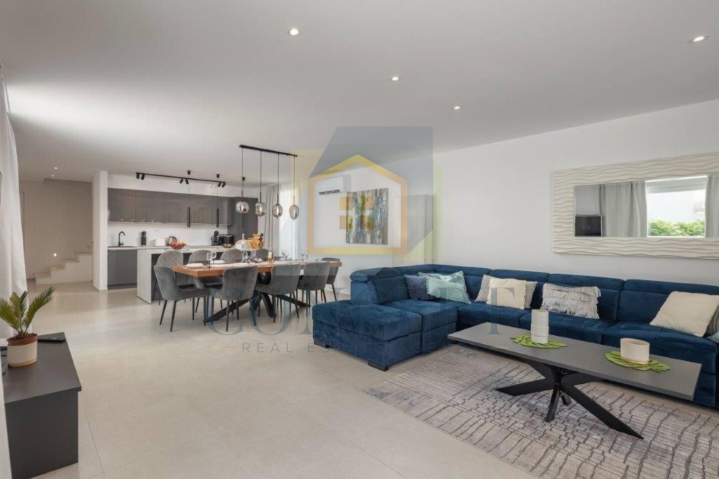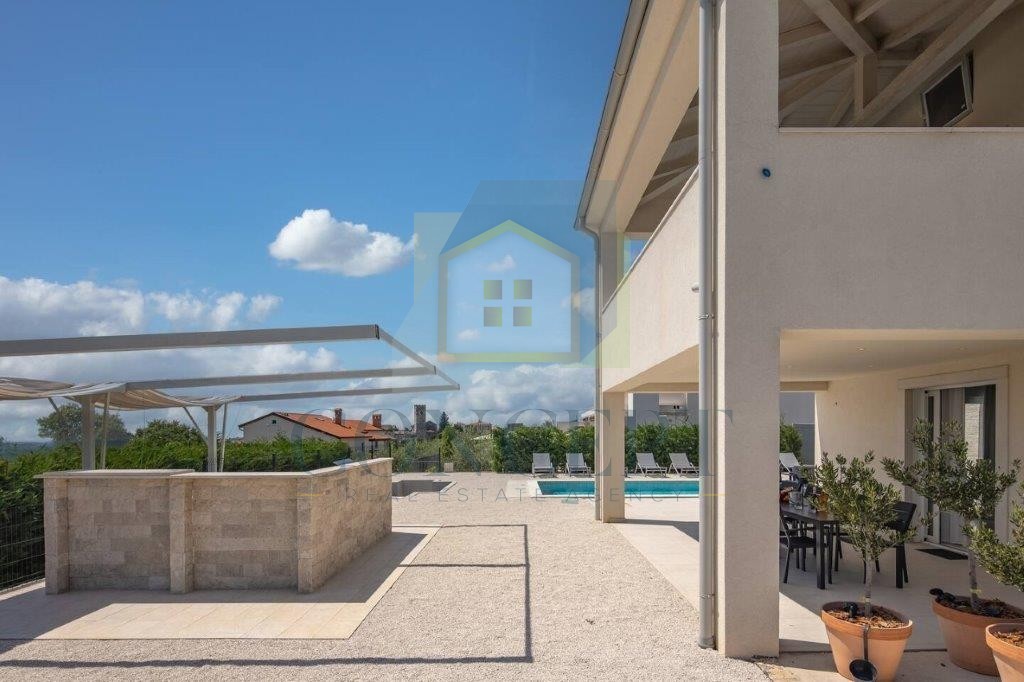 In vendita meravigliosa villa indipendente con piscina a Sveti Lovreč, situata in un tranquillo e nuovo complesso residenziale, a soli 300 metri dal centro del paese, dalla scuola, dall'asilo e dai negozi. La casa è stata costruita nel 2021 secondo moderni standard edilizi, con una superficie totale di 292 m² distribuiti su piano terra e primo piano.