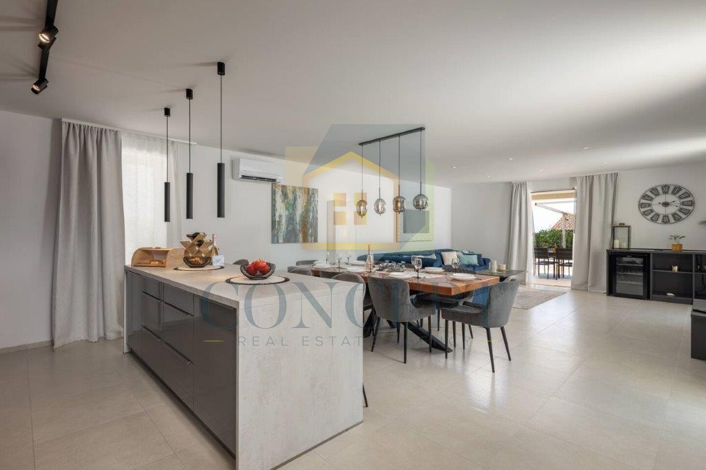 Al piano terra si trova un ampio soggiorno collegato alla cucina e alla sala da pranzo, una camera da letto con bagno privato, un bagno per gli ospiti e un ingresso. Al primo piano sono situate tre comode camere da letto, ognuna con bagno privato, mentre due grandi terrazze offrono una splendida vista sul mare.