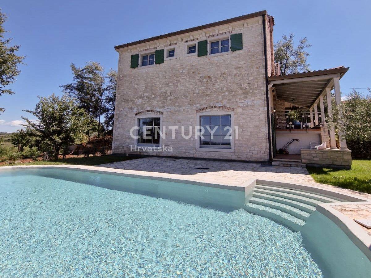 Zona di Poreč, casa in pietra con piscina e vista mare