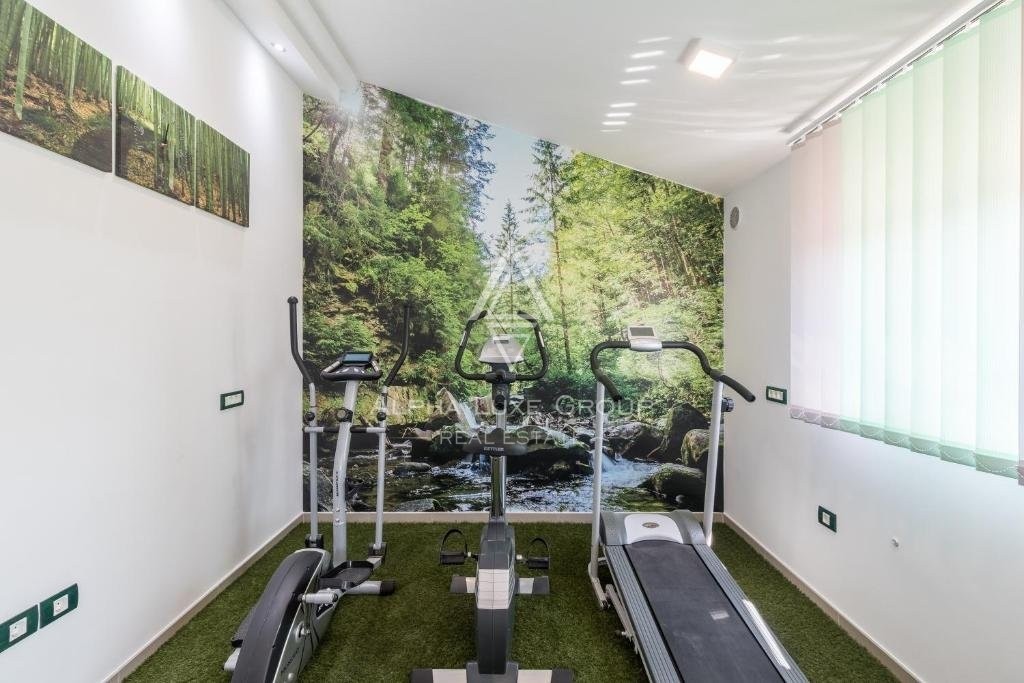 La proprietà è composta da tre unità abitative separate che possono funzionare in modo indipendente o congiunto. Il piano terra ospita l'unità più piccola accanto a un garage, da cui una scala conduce al seminterrato e alla scala principale che collega tutte le unità. L'area principale del piano terra comprende un soggiorno, cucina, sala da pranzo, tre camere da letto e due terrazze. Il piano superiore presenta un appartamento con soggiorno, cucina, sala da pranzo, tre camere da letto, due bagni e una zona benessere dotata di jacuzzi, sauna e palestra.