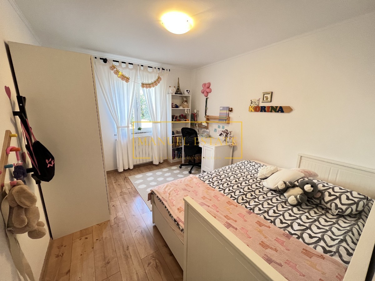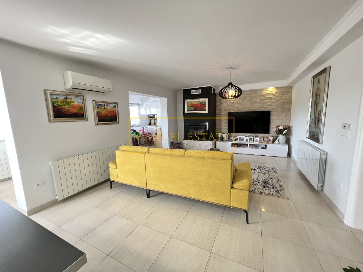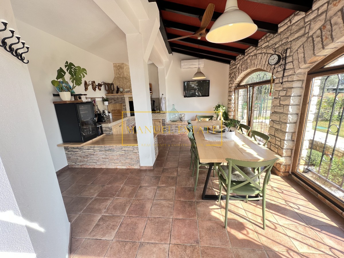 Appartamento completamente arredato e decorato vicino al mare, nell'incantevole Cittanova. Si trova in una buona posizione, a circa 500 metri dal mare e dalle spiagge, e a circa 1200 metri dal centro cittadino. Situato al piano terra, di 122 mq con giardino di 112 mq. Si compone di ingresso, 2 camere da letto, cabina armadio, bagno, ampia cucina open space collegata alla sala da pranzo e soggiorno. Accanto al soggiorno c'è una stanza per un ufficio in casa o una sala giochi per bambini. Proprio all'ingresso dell'appartamento si trova una taverna perfetta per socializzare e rilassarsi, dispone di 26 mq con cucina, camino, pareti in vetro e vista sul giardino e sul verde. La taverna è dotata di aria condizionata ed è utilizzabile tutto l'anno. Il riscaldamento nell'appartamento è regolato dal riscaldamento a pavimento e dall'aria condizionata. L'appartamento dispone di un posto auto nel cortile recintato. Il giardino di 112 mq, minuziosamente curato, è dotato di impianto di irrigazione ed è circondato da una siepe. Nelle immediate vicinanze si trovano tutti i servizi necessari per una comoda quotidianità vita; farmacia, ambulatorio, asilo, scuola, negozi, stazione degli autobus, mare e spiagge. Il parco acquatico Istralandia si trova a circa 7 km di distanza, Umago e Parenzo distano circa 15 km.