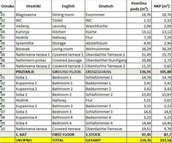 Ha una superficie totale di 244 m² ed è costruita su un terreno di 560 m².