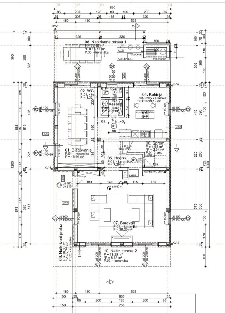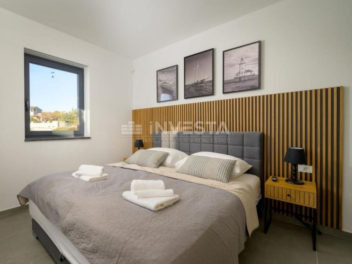 La villa ha un design moderno e sono stati utilizzati materiali di alta qualità nella costruzione. È dotata di un moderno sistema di riscaldamento e raffreddamento tramite pompa di calore, riscaldamento a pavimento nei bagni e tapparelle elettriche.