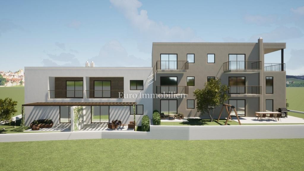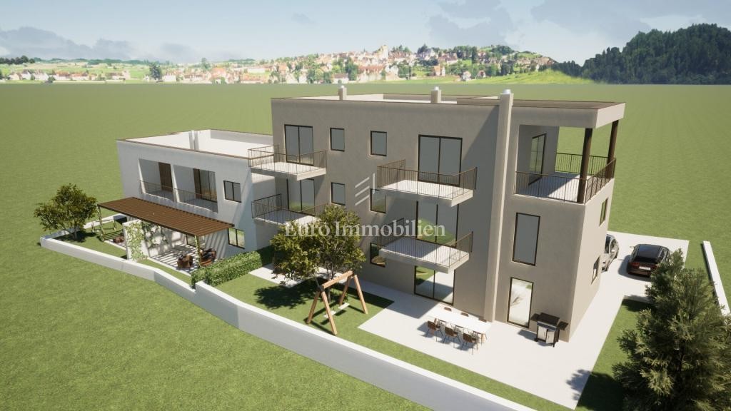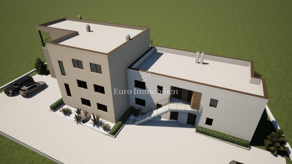 Apartment 4 is located on the 1st floor and consists of an entrance hall, two bedrooms, bathroom, living room, kitchen, dining room and a 6.40 m2 loggia. The apartments will be completed up to the furnishing phase, including quality ceramics and sanitary ware, electric underfloor heating, air conditioning, and interior wooden and exterior PVC joinery. Each apartment has 2 parking spaces. The expected completion of construction is the end of 2026. The buyer is exempt from paying real estate tax!