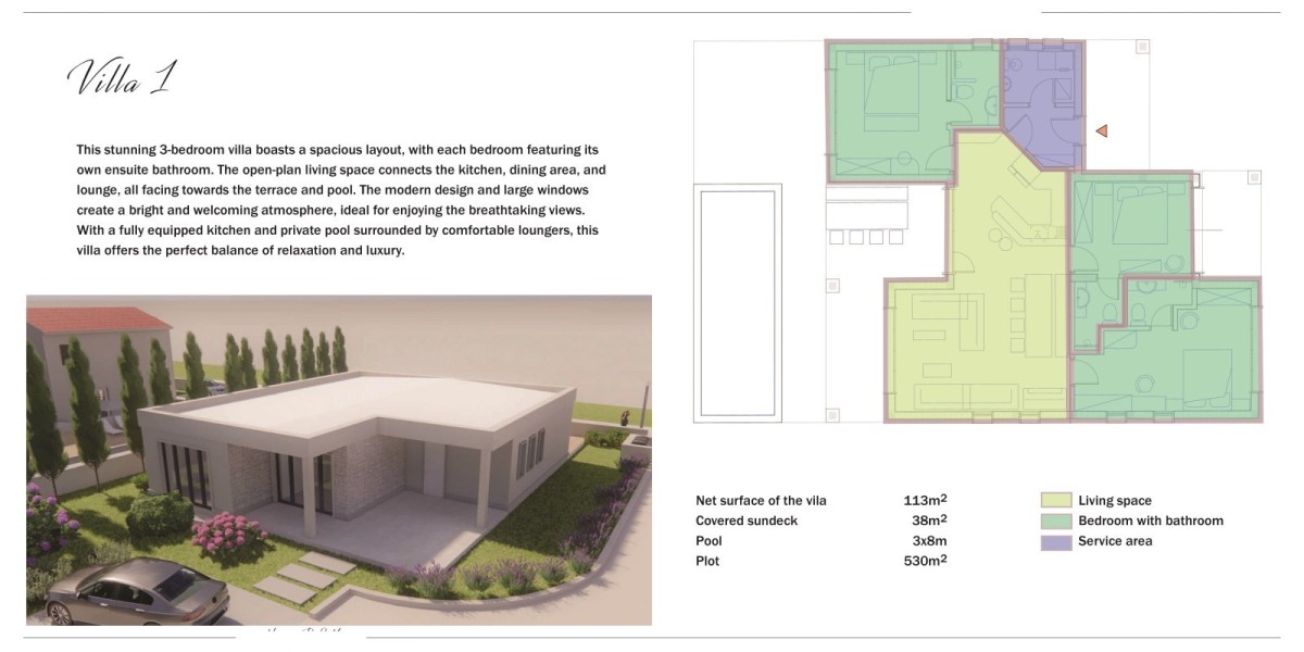 Inoltre, il futuro proprietario può iniziare subito la costruzione della villa e, se lo desidera, può adattare il progetto esistente alle sue esigenze durante la fase di costruzione.