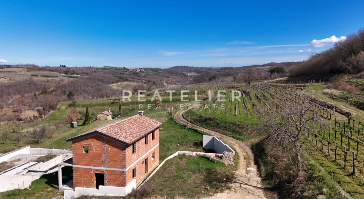 Villa in costruzione in una posizione idilliaca a Momjan con una vista mozzafiato. La struttura sarà composta da un piano terra e primo piano. Al piano terra ci sarà una cucina con sala da pranzo, corridoio, terrazza, WC e ripostiglio. Al primo piano ci sarà un corridoio, ripostiglio e tre camere da letto, ognuna con bagno privato e accesso alla terrazza. Il riscaldamento sarà fornito tramite riscaldamento a pavimento e aria condizionata. Nel cortile è prevista una piscina riscaldata con un'area prendisole adiacente e una spaziosa cucina estiva.