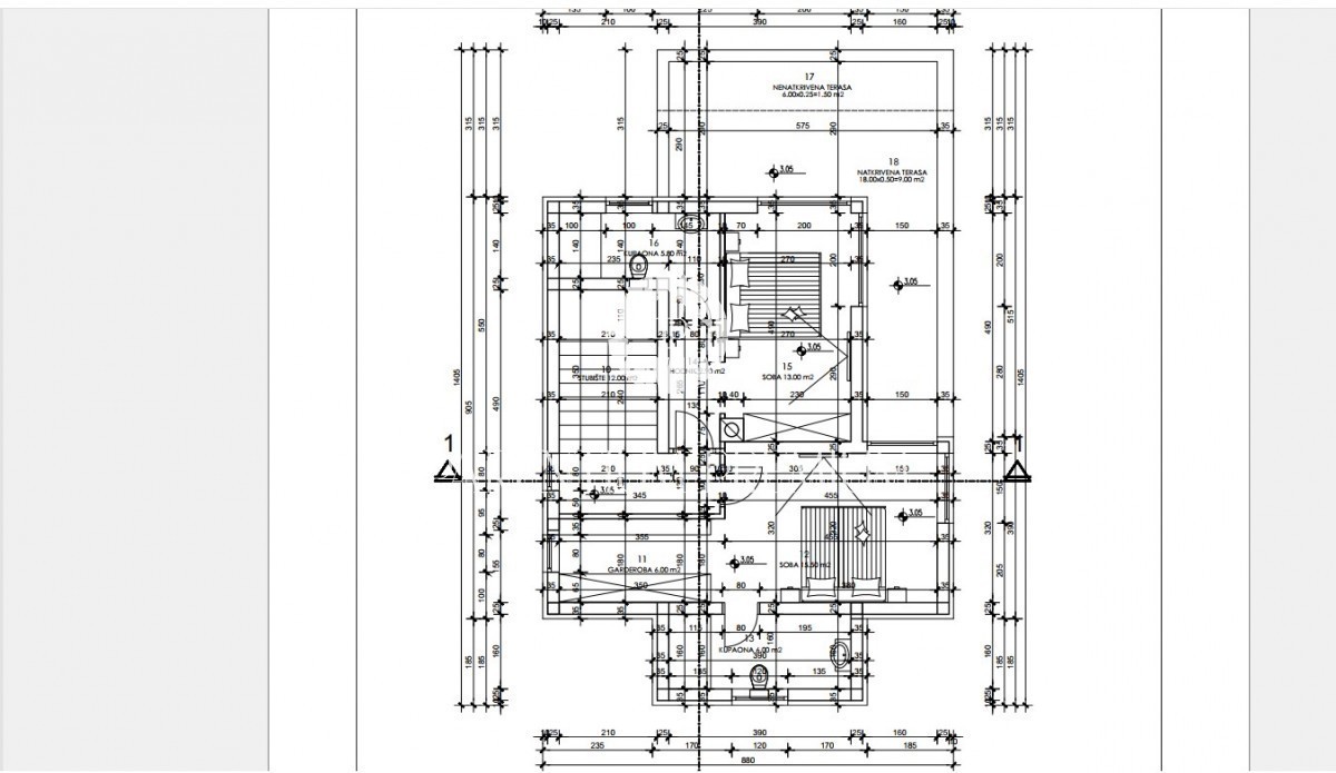 Le scale interne portano al primo piano, dove si trovano due camere da letto, ciascuna con il proprio bagno, e la camera padronale è dotata anche di guardaroba/cabina armadio, ogni camera ha accesso ad un ampio terrazzo coperto e in parte scoperto con una meravigliosa vista del mare.