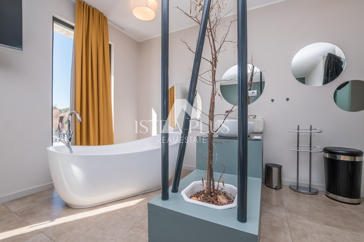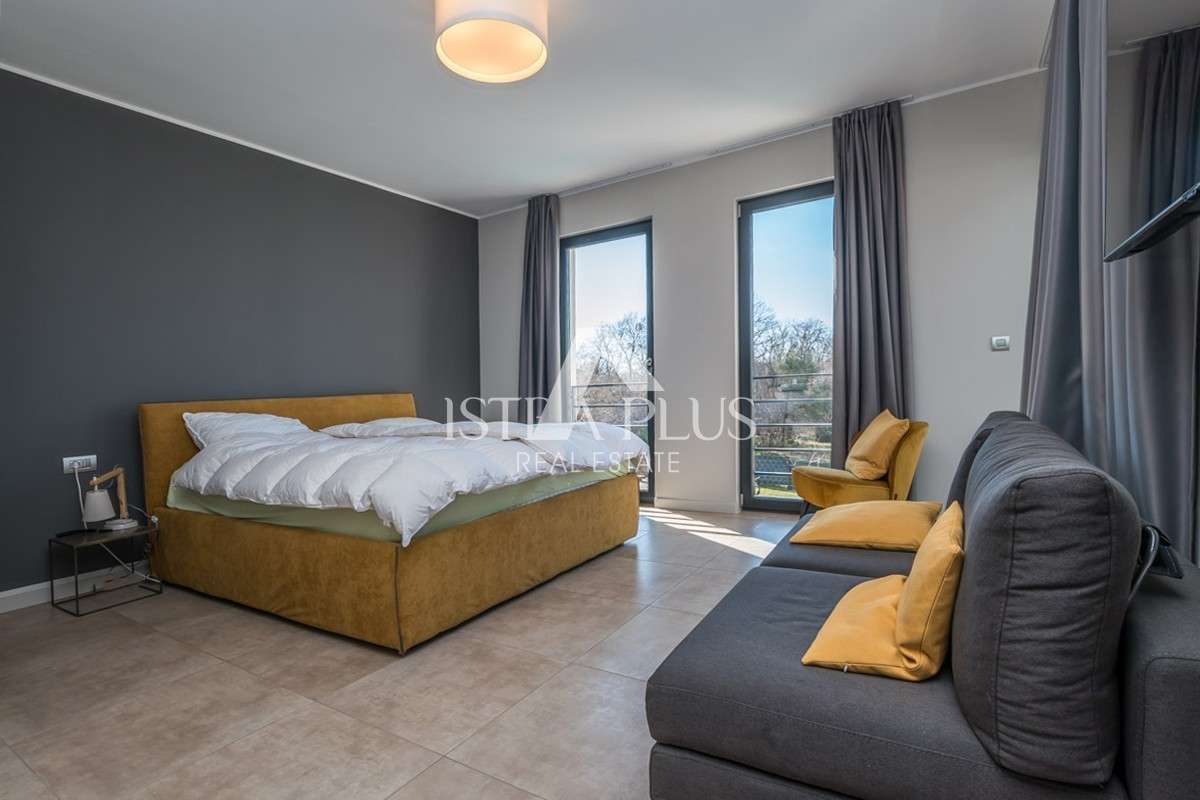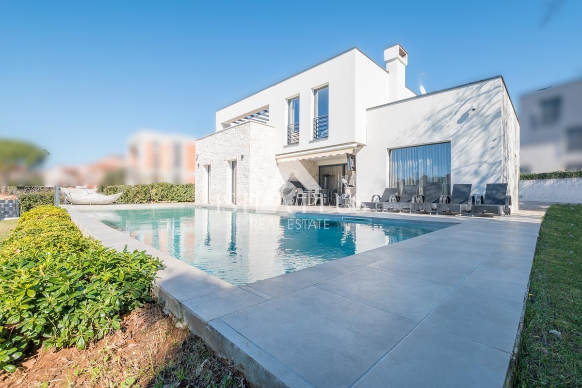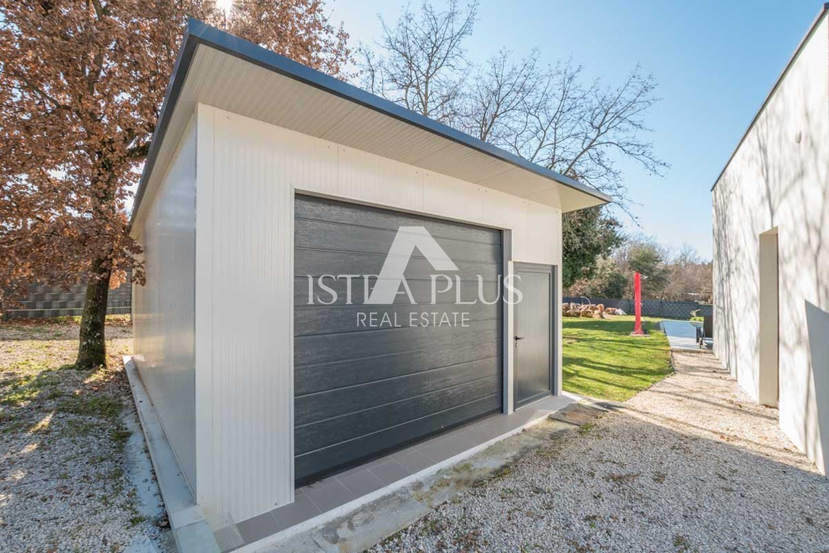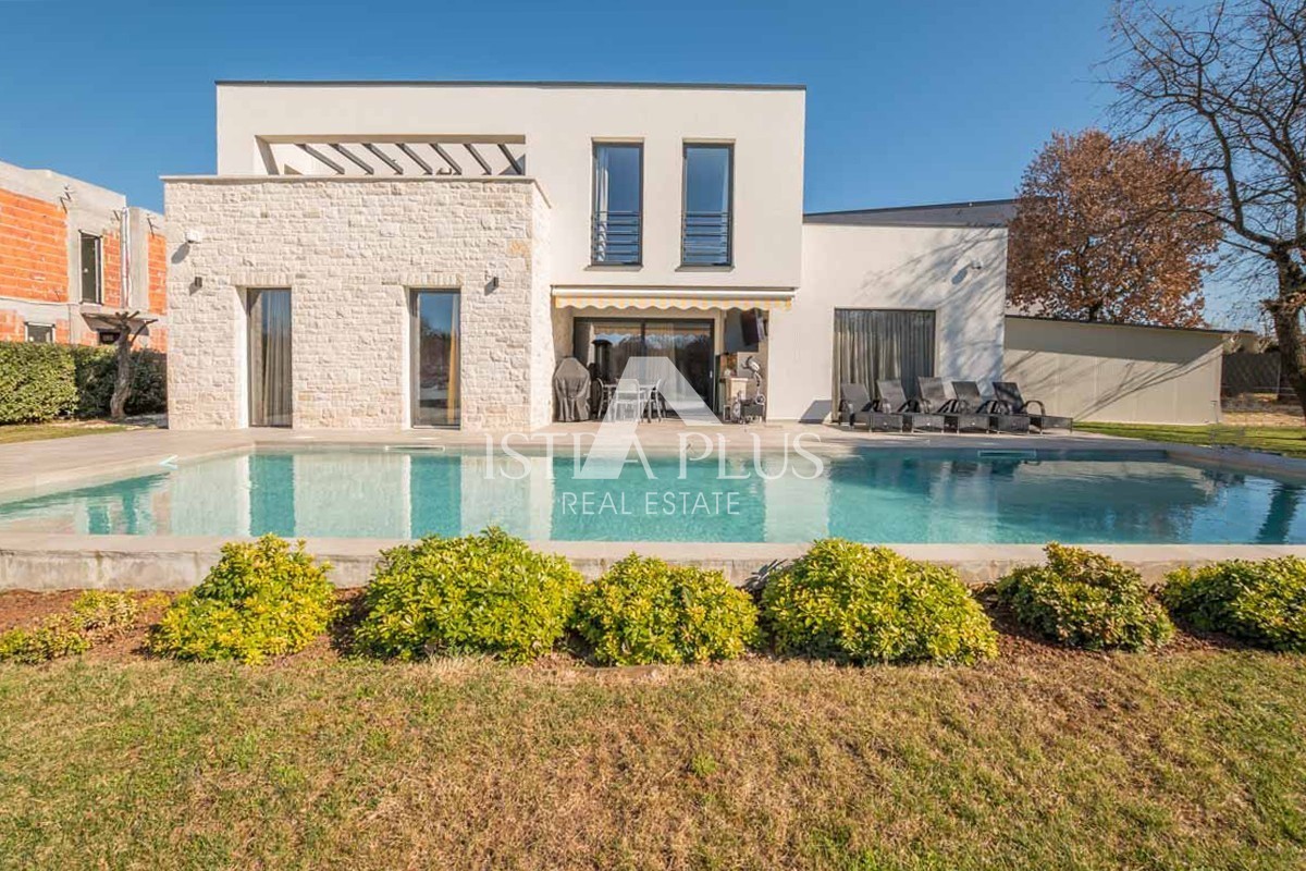 Una perfetta combinazione di architettura moderna e ambiente mediterraneo sono le caratteristiche principali di questa villa che vi presentiamo. La villa si trova nella periferia di Parenzo, a soli 2 km dalla spiaggia e dal centro, ma abbastanza lontana dal trambusto della città. È stata progettata come una villa familiare che soddisfa i più severi criteri funzionali ed estetici. La villa colpisce per la sua raffinata eleganza: le linee rette e i colori caldi e rilassanti di questa villa le conferiscono un fascino straordinario.