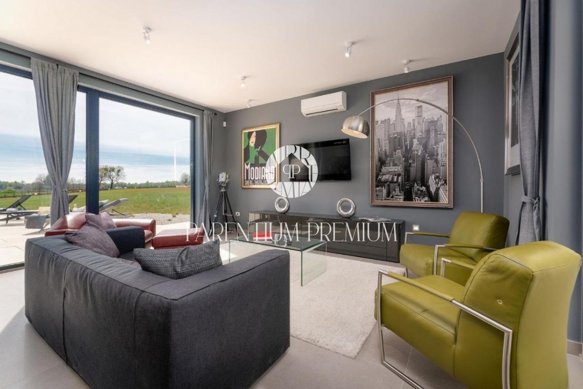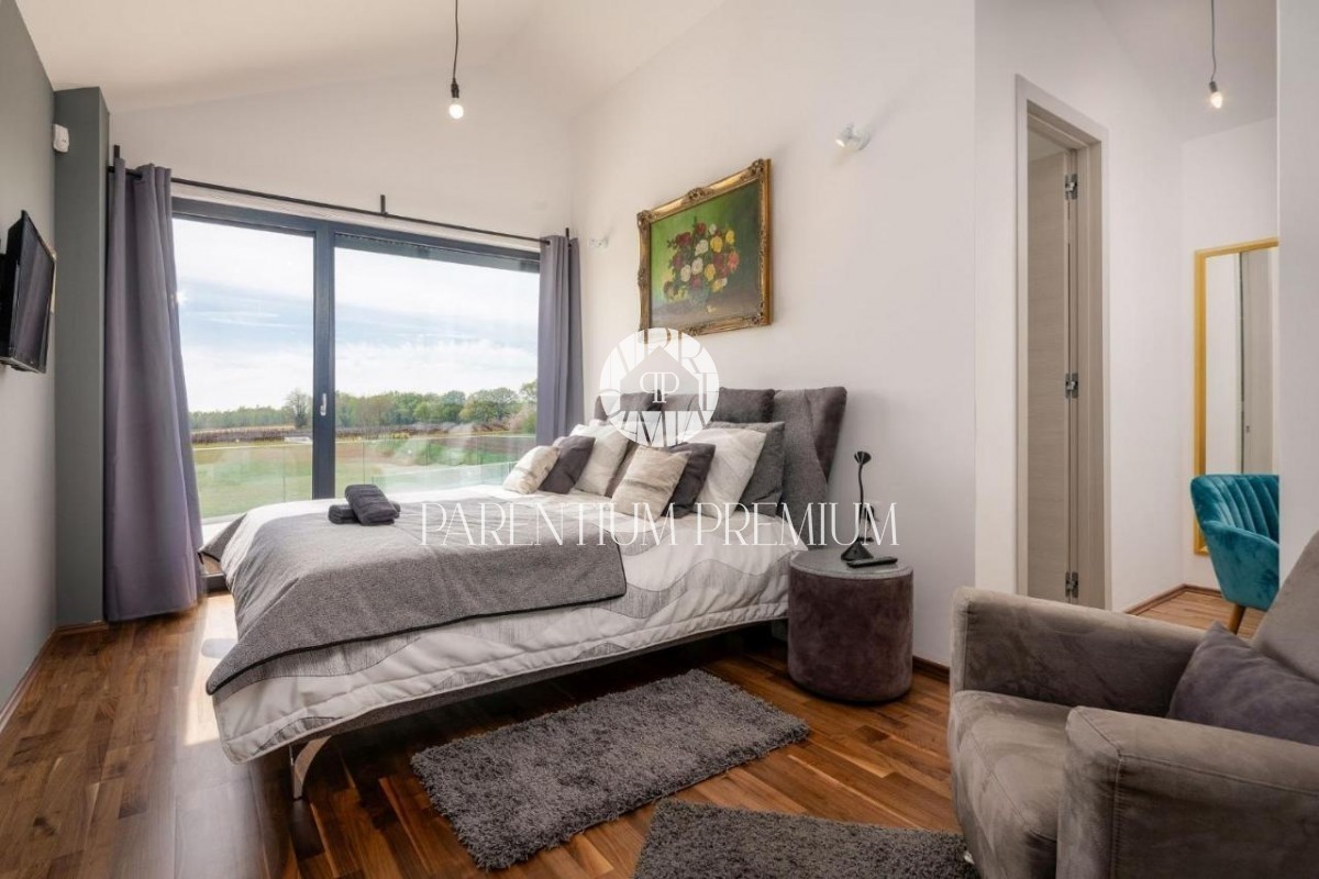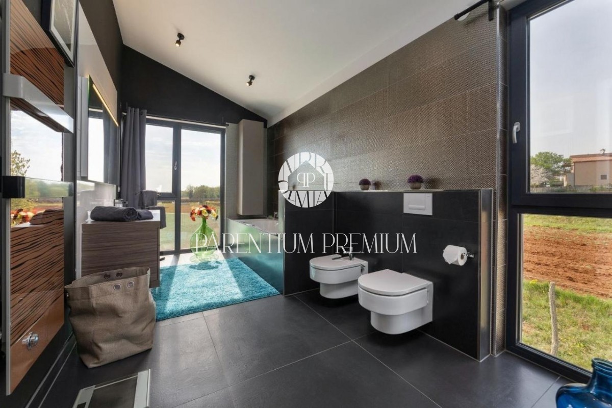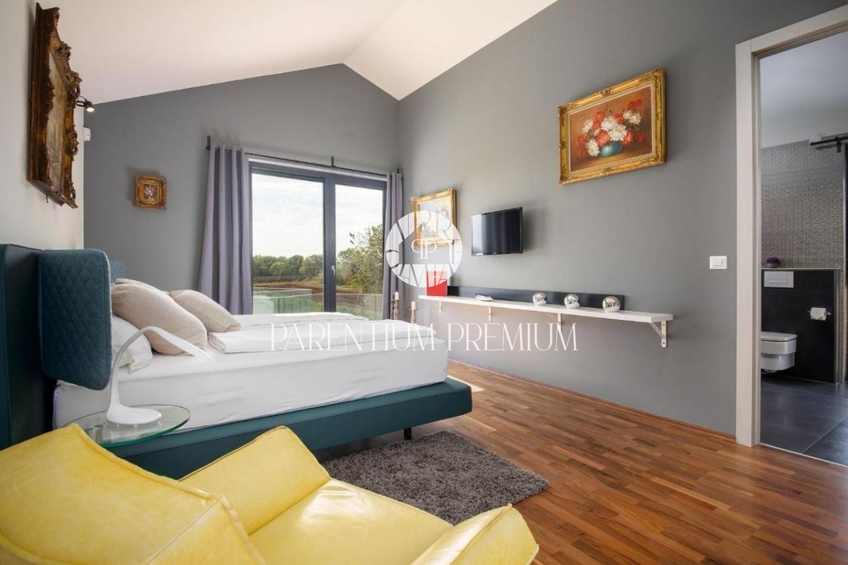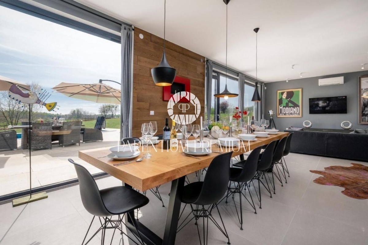 Una lussuosa villa con piscina è in vendita ai margini di una piccola città istriana. Si trova su un grande appezzamento di terreno di 6270 m2 circondato dalla natura e dai vigneti.