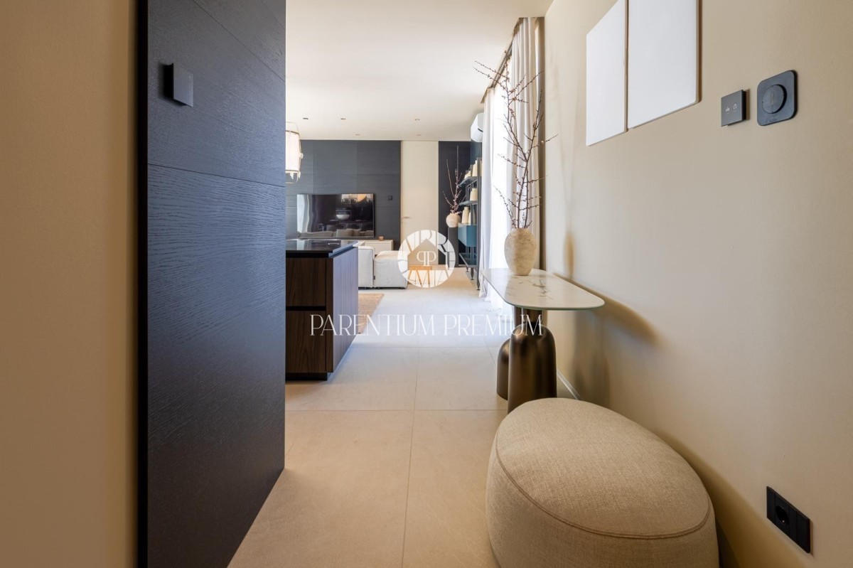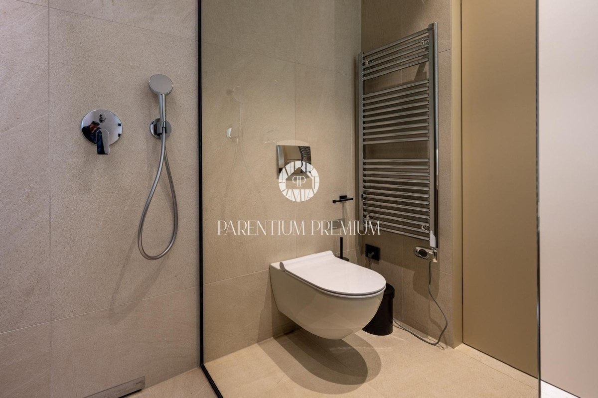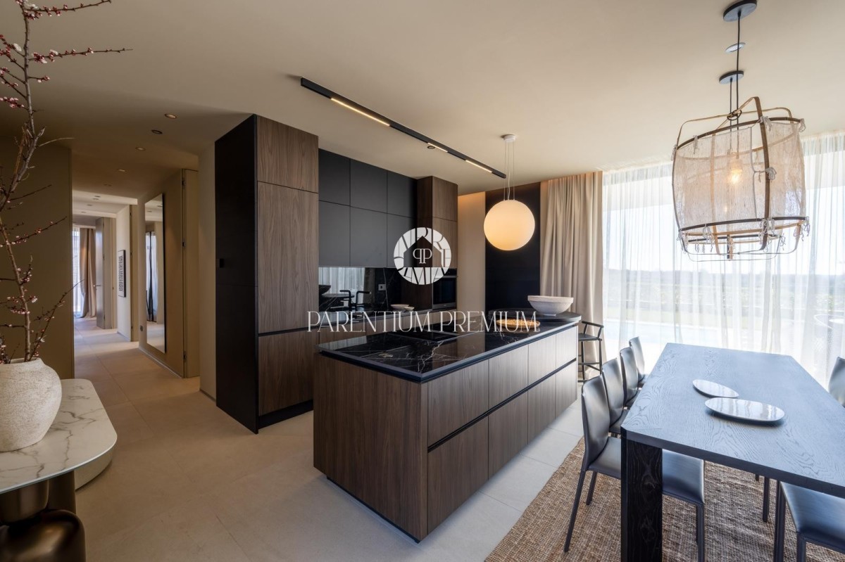 Il soggiorno è dotato di TV Samsung da 75’’, mentre la cucina è equipaggiata con elettrodomestici Whirlpool di alta qualità. Le finiture includono ceramiche Lea Ceramiche, sanitari Catalano, porte interne Lestur con telai in alluminio a scomparsa e sistemi di illuminazione Flos e AY ILLUMINATE. Gli arredi firmati Alf Da Frè, Bonaldo, Doimo Salotti e Désirée garantiscono un elevato standard estetico e qualitativo.
