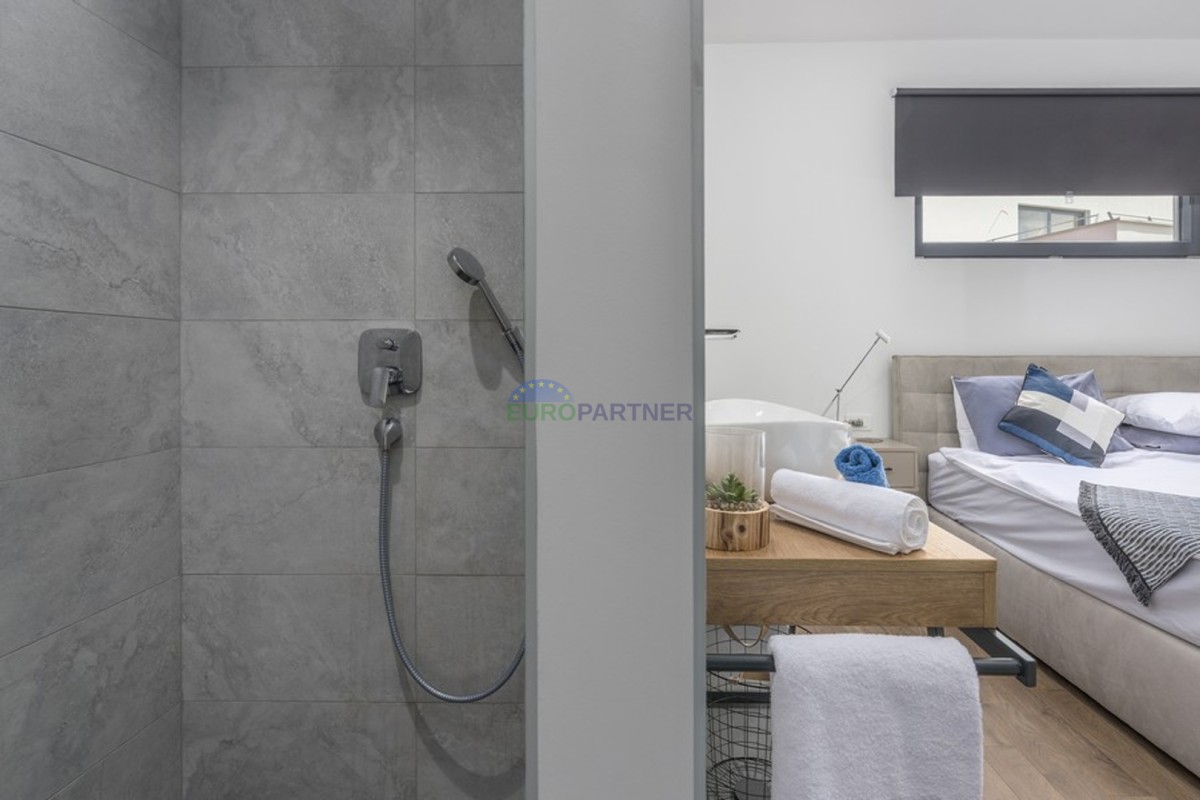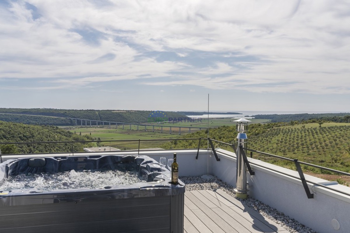 Questa villa, oltre alla costruzione di alta qualità e all'architettura moderna, è adornata dalla sua posizione: da tutti i suoi punti c'è una magnifica vista sul mare, sugli uliveti e sulla natura!