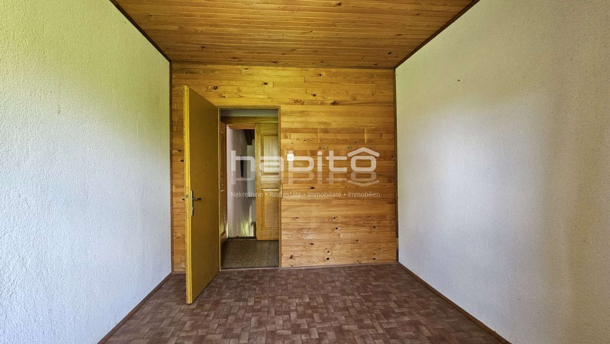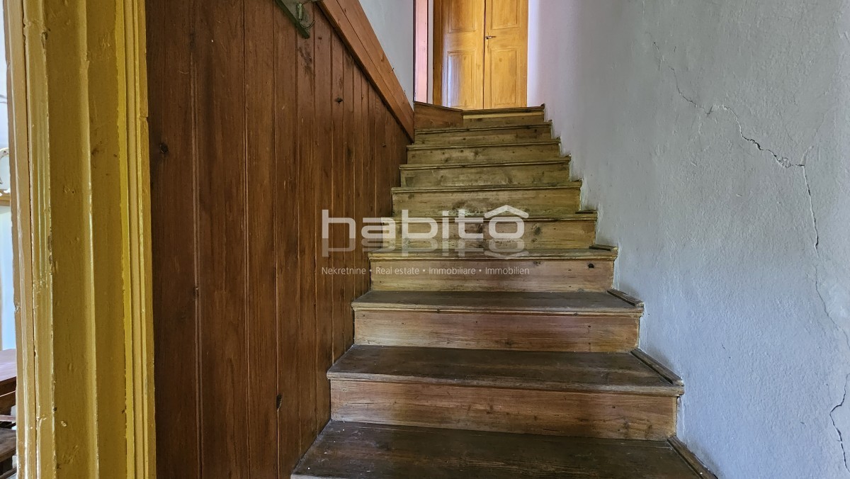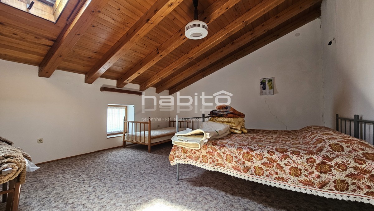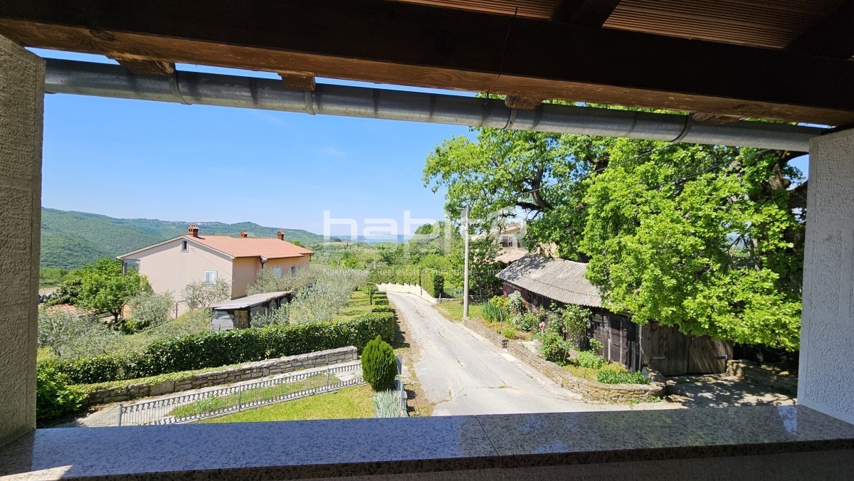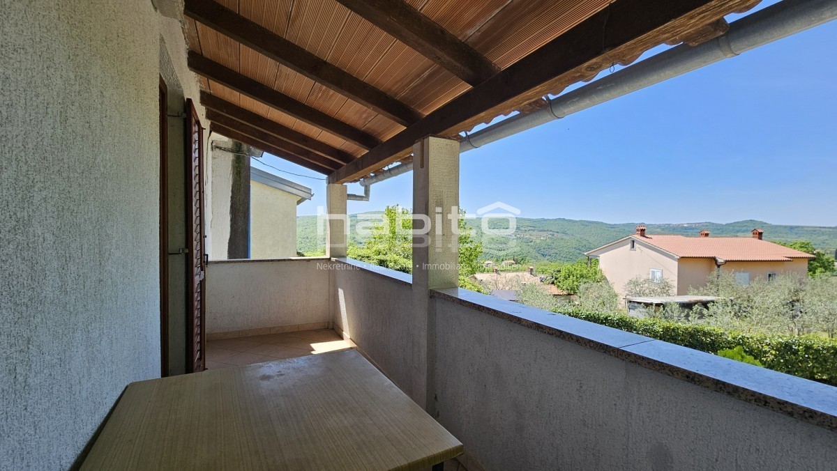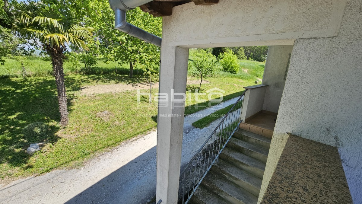 Il piano terra della casa è composto da ingresso, bagno, cucina, soggiorno, due camere da letto e balcone di mq. 7 m2 che offre una bellissima vista panoramica sull'Istria interna.