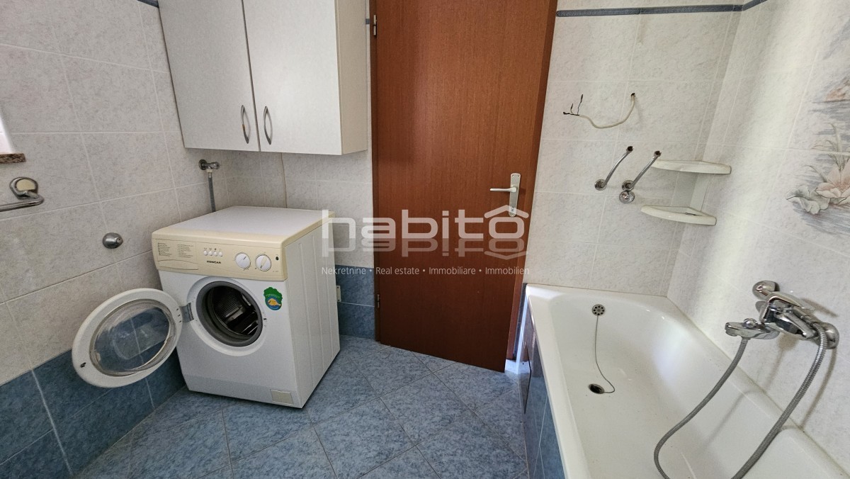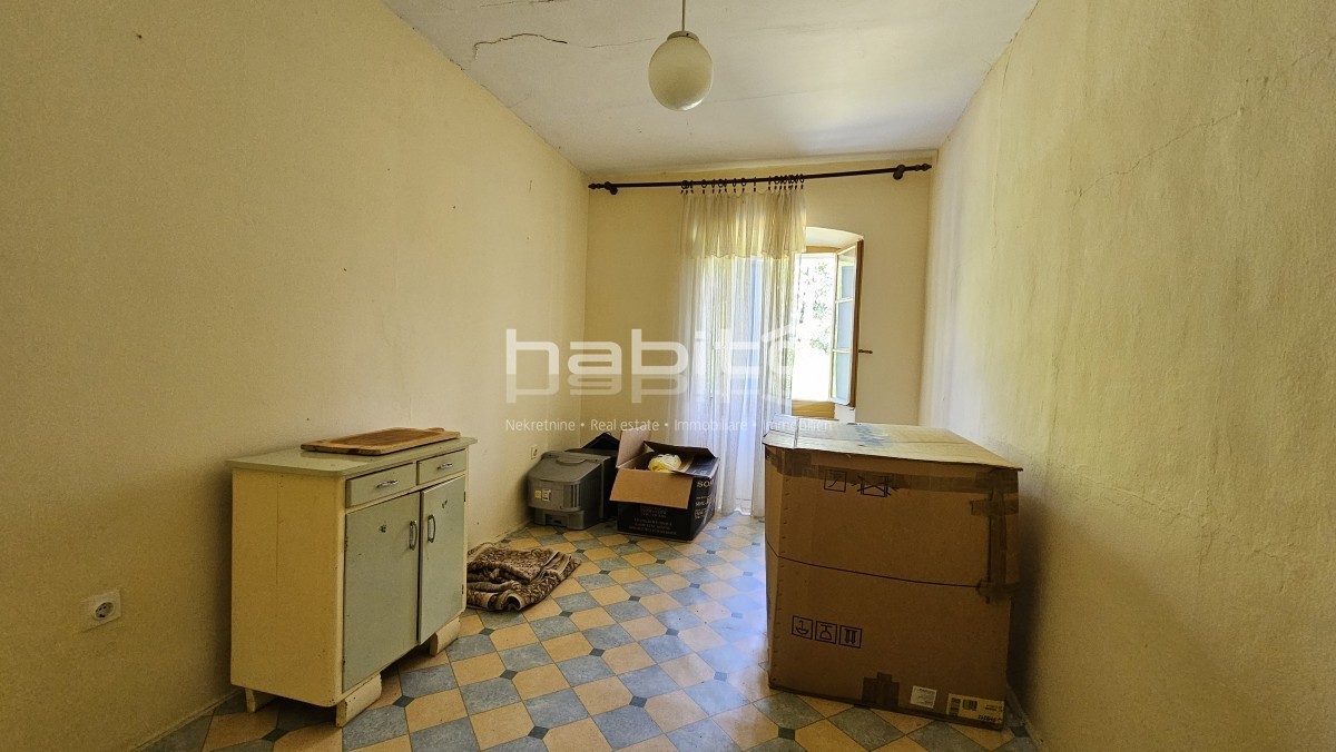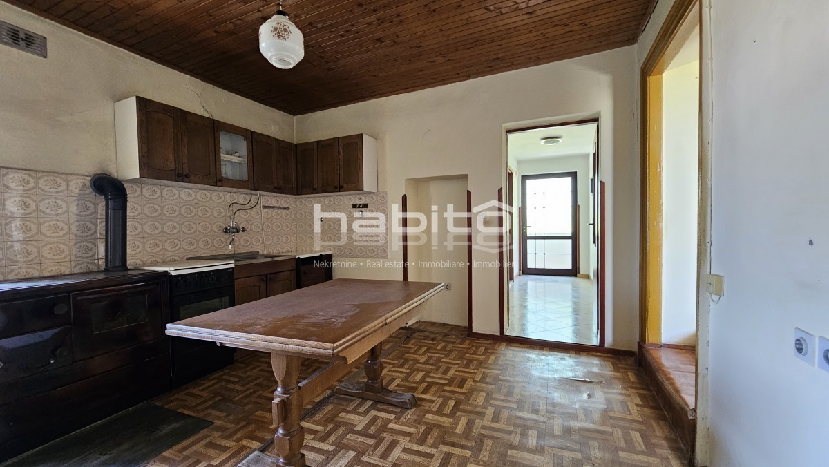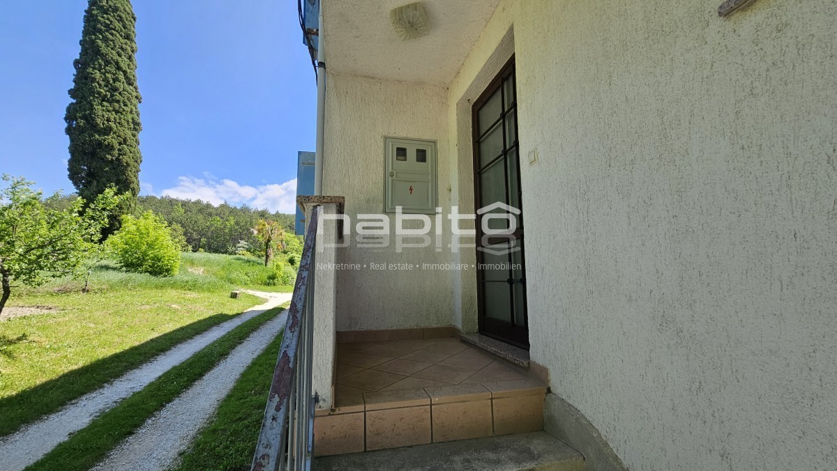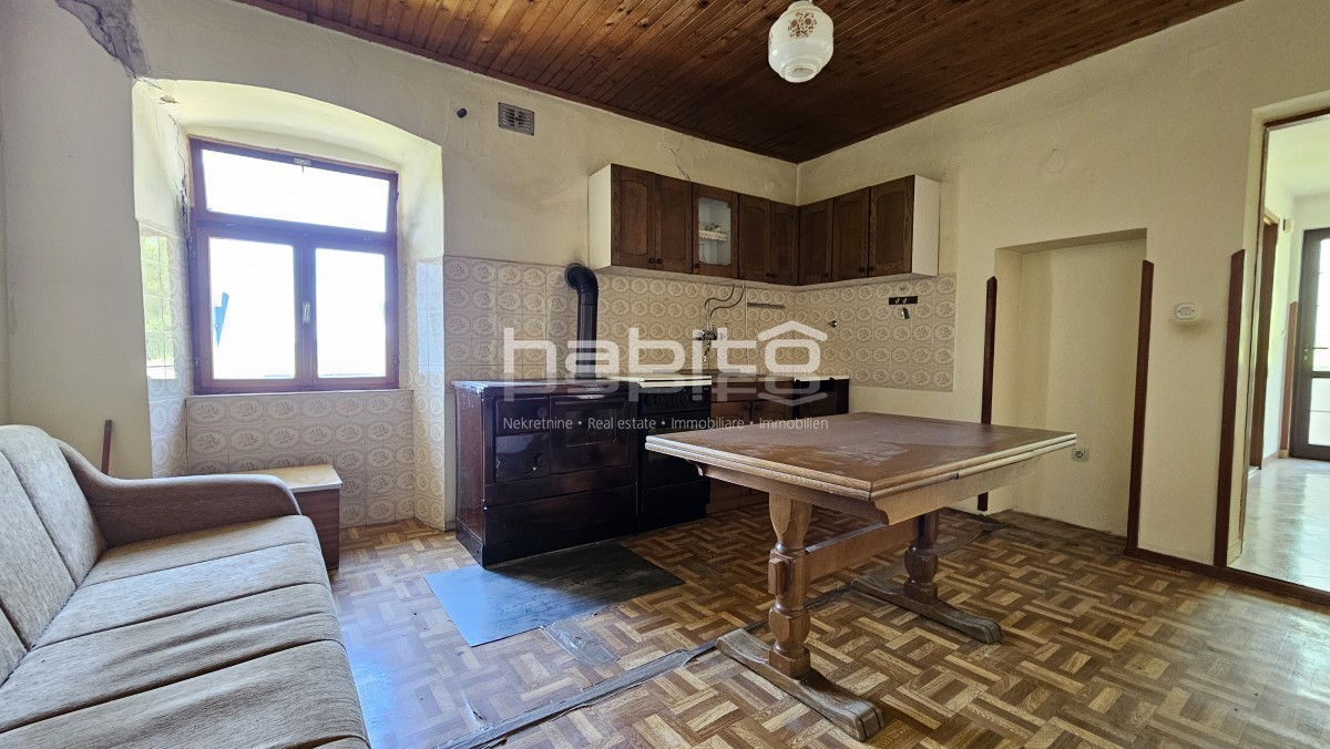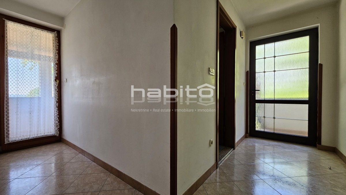 Il piano terra della casa è composto da ingresso, bagno, cucina, soggiorno, due camere da letto e balcone di mq. 7 m2 che offre una bellissima vista panoramica sull'Istria interna.