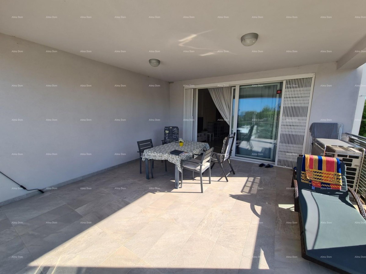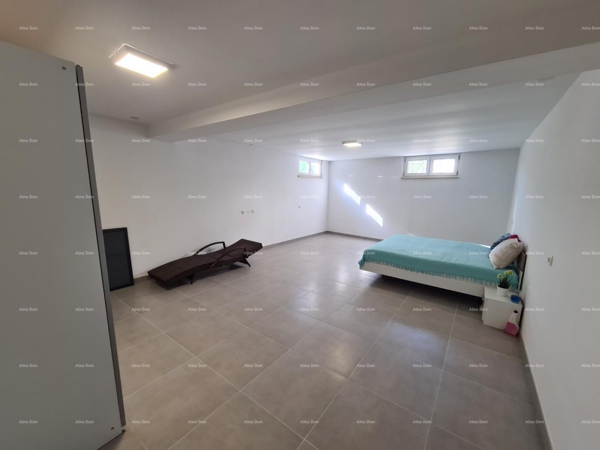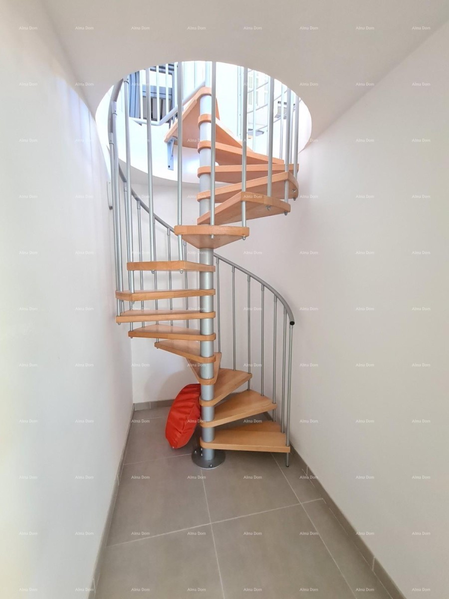 Het bestaat uit een inkomhal, twee slaapkamers, een badkamer, een keuken met eetkamer, een woonkamer en een groot terras. Een interne trap vanuit de woonkamer leidt naar de benedenverdieping waar zich een grote slaapkamer bevindt.