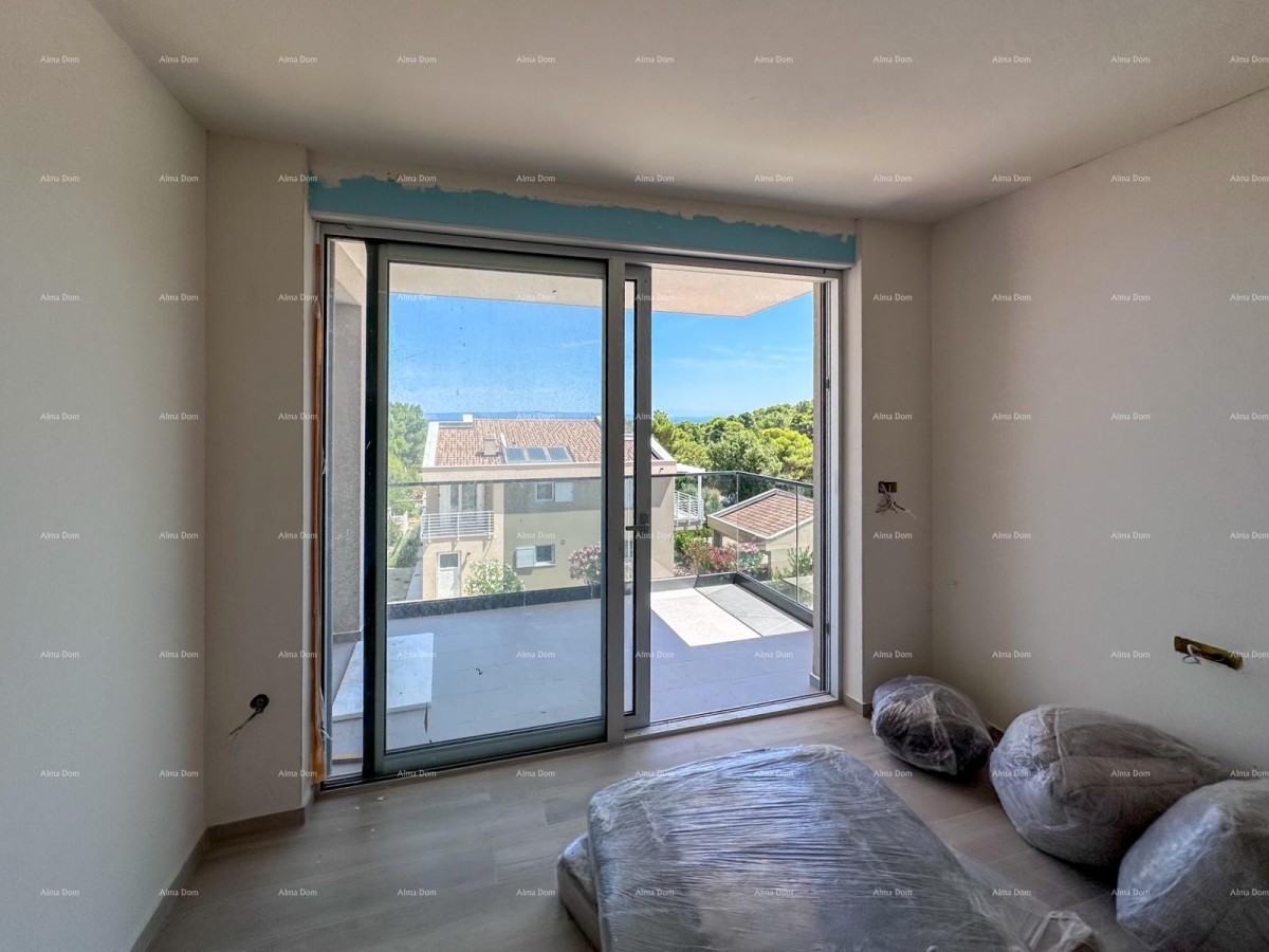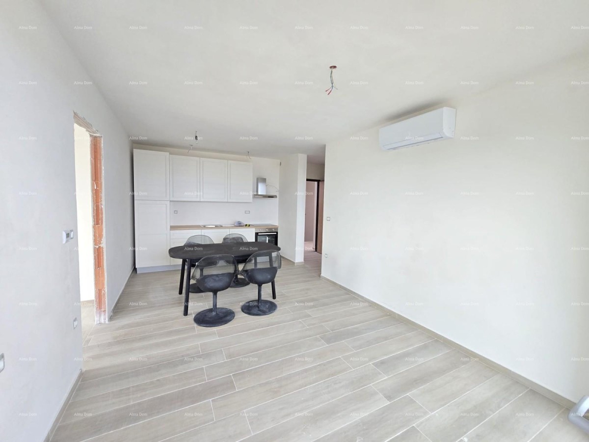 In een nieuw en modern gebouw dat zich in de laatste fase van de bouw bevindt, bieden wij dit aantrekkelijke appartement aan, gelegen in een rustige buurt van Ližnjan, met uitzicht op zee.