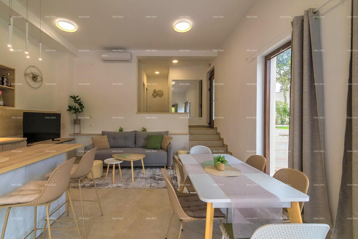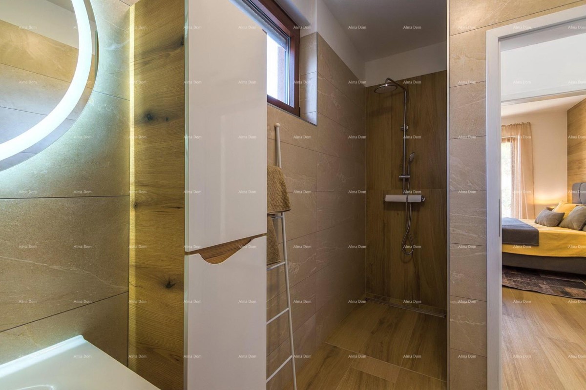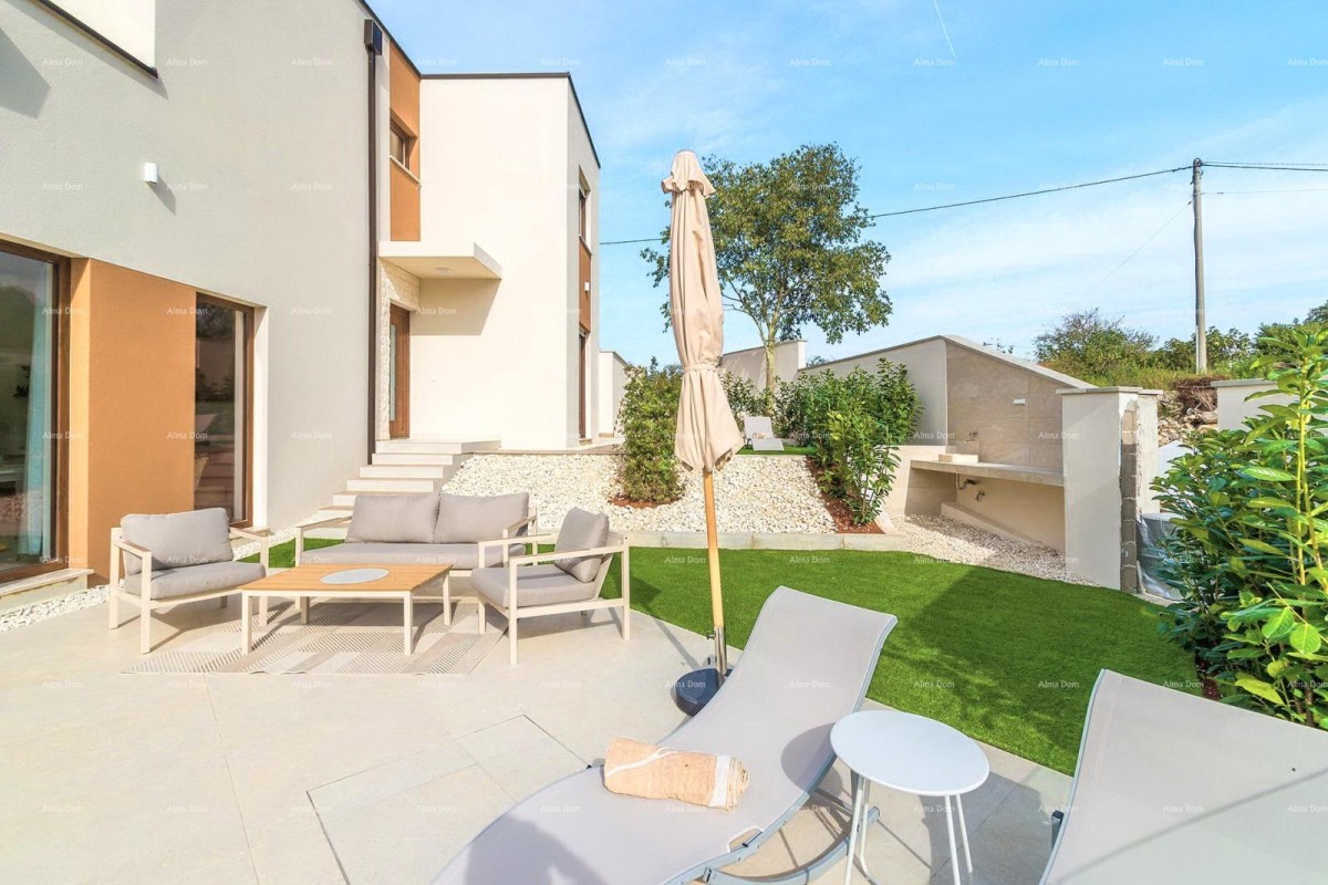 In een rustige wijk van Svetvinčenat bevindt zich deze moderne halfvrijstaande woning, een perfecte combinatie van comfort en stijl. Met een totale oppervlakte van 144 m² biedt het een ruime woonkamer, keuken, twee slaapkamers en twee badkamers.