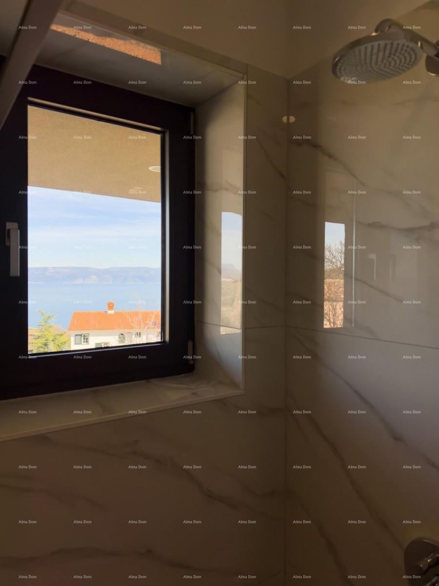 Op de eerste verdieping van het huis, die toegankelijk is via een binnen- en buitentrap, bevinden zich drie slaapkamers, elk met een eigen badkamer en een groot gemeenschappelijk terras met een prachtig uitzicht op de zee, de eilanden en Rijeka.
