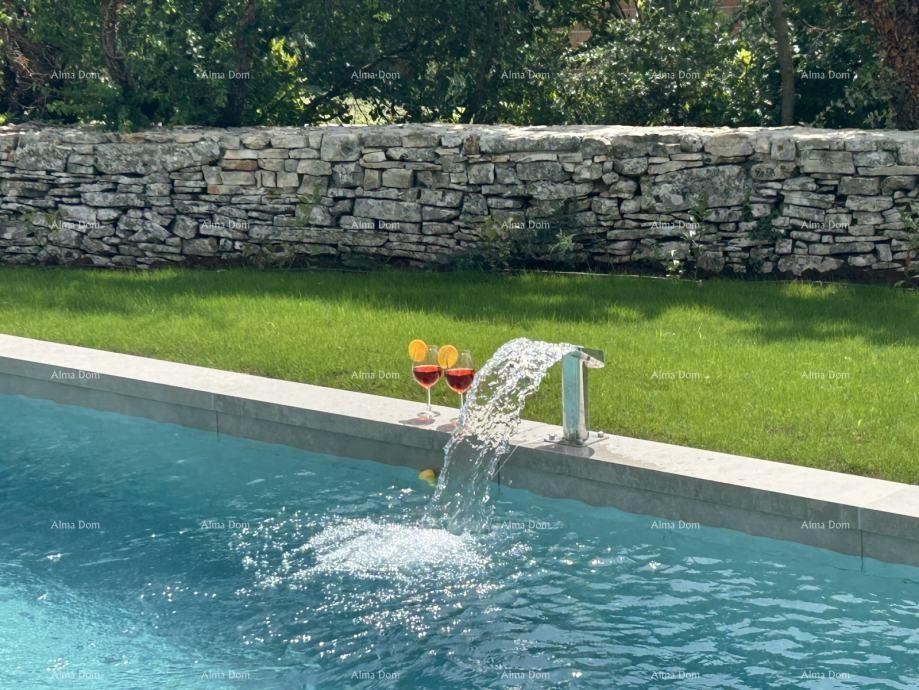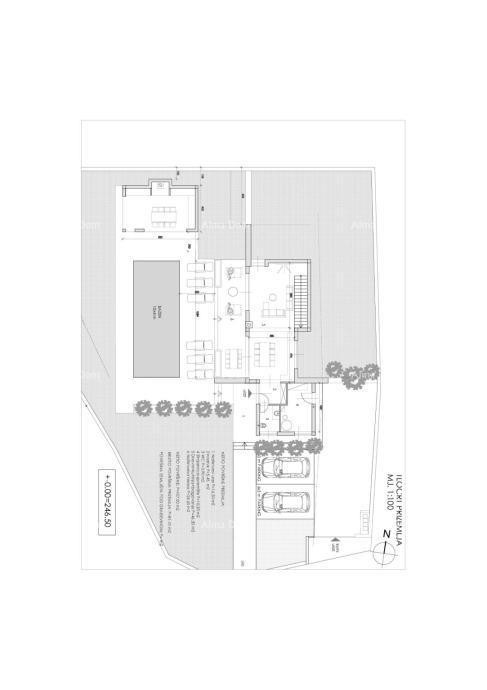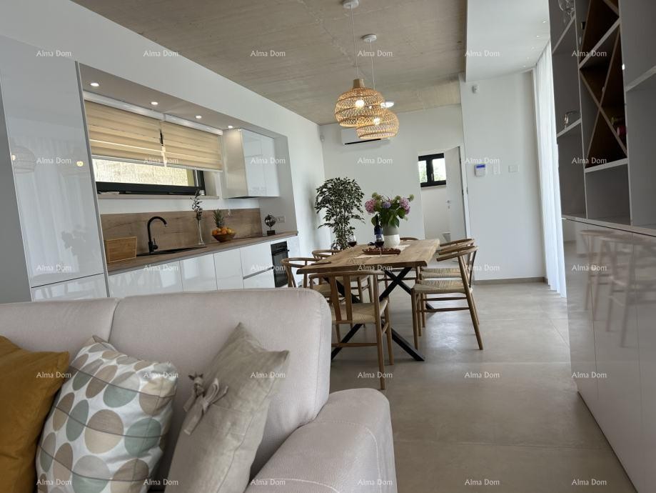 Aan de rand van het dorp (het laatste verstedelijkte perceel) staat een moderne woning met zwembad op het zuidwesten te koop. De start van de bouw staat gepland voor het najaar van 2022 en de oplevering in 2023. Het huis bestaat uit een woonkamer met keuken en eetkamer, een toilet, een berging, een stookruimte en een overdekt terras, evenals een bijgebouw met open haard op de begane grond. Boven zijn drie slaapkamers met badkamers en een balkon. Het huis wordt verwarmd en gekoeld met inverter-airconditioners, kunststof schrijnwerk, keramische tegels, parket in de kamers, tegels in het zwembad. De eerste fase vloerverwarming en collectoren. Op het erf een zwembad van 40 m2, gazon met automatische irrigatie, parkeerplaats voor twee auto's, voortuindeur met automatische opening, hekwerk.